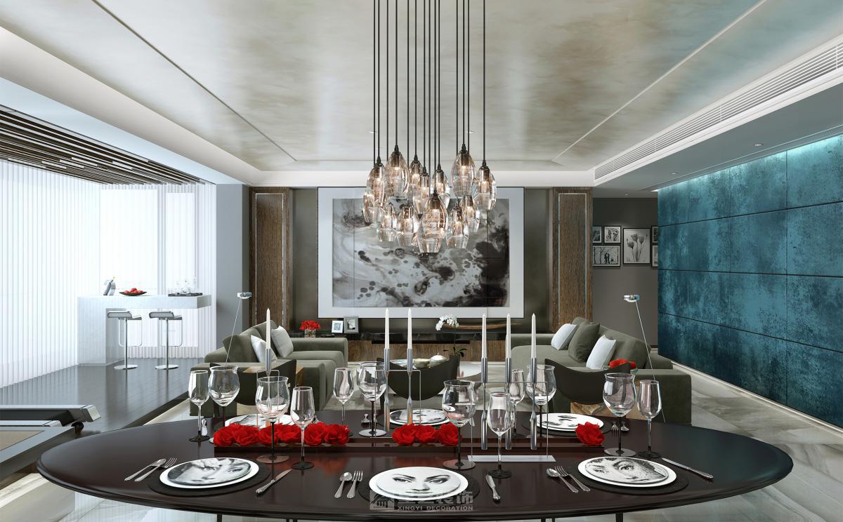 栖身江岸,与潮声相拥,这方宅邸以意式轻奢为骨,将江景诗意与生活志趣熔于一室。 我们打破室内外的边界壁垒,将阔绰阳台全数纳入室内,重构出一方兼具实用与意趣的复合空间:一侧铺陈温润茶台,闲来烹茶听雨,凭窗揽尽江天一色;一侧打造专业健身角,运动时与江风撞个满怀,让活力与江景共生。 客厅是空间的视觉核心,定制蓝色硬包背景墙跳脱常规,与意式轻奢的低调奢华碰撞出独特韵味。浅咖色皮质沙发、金属线条边几错落排布,细腻的大理石地砖倒映江光,每一处细节都流露着精致而不张扬的格调。 两间女儿房以清新森系绿色为主调,满溢童真与自然气息。上下铺设计最大化利用空间,搭配柔软的布艺软装与趣味收纳摆件,既满足姐妹俩的陪伴时光,又预留出充足的玩耍天地,让成长的每一刻都被绿意与阳光包裹。 主人房则偏爱深邃沉静的调性,深灰与胡桃木色交织出沉稳气场,简约的软包大床、隐形式收纳柜体,勾勒出静谧的休憩氛围。主卫以通体大理石铺陈,流畅的线条、利落的五金件,将意式高级感贯彻到底,沐浴时尽可享受独处的松弛与奢雅。 凭窗望江,室内是意式轻奢的精致日常,江风穿堂,生活的万般意趣皆在此间缓缓铺展。