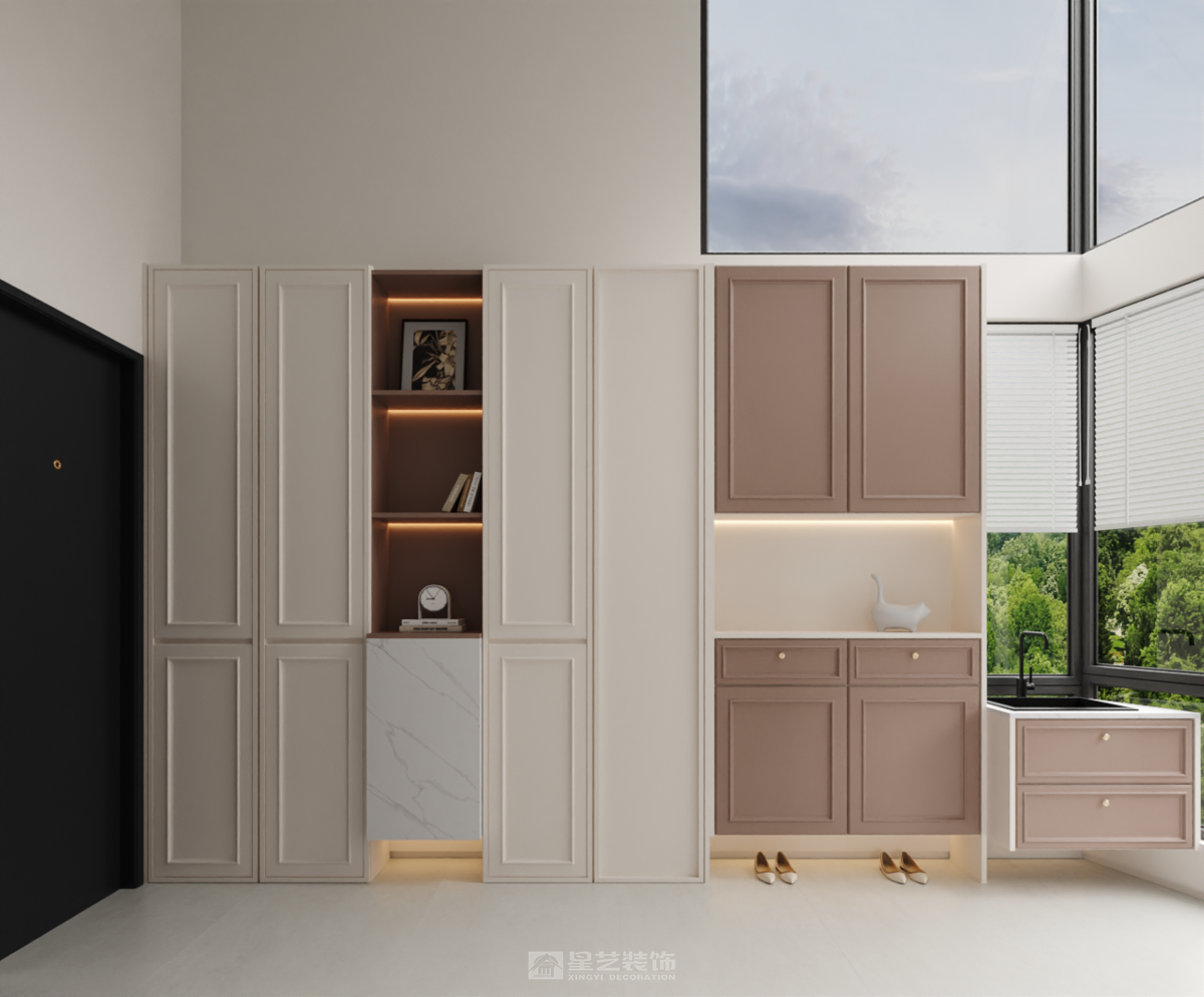 客户追求给人光感的氛围,借助自然光与室内氛围光感的互相融合,法式与简欧的互相融入给人不同的视觉感官。