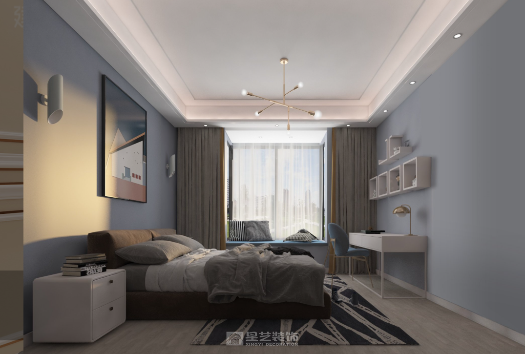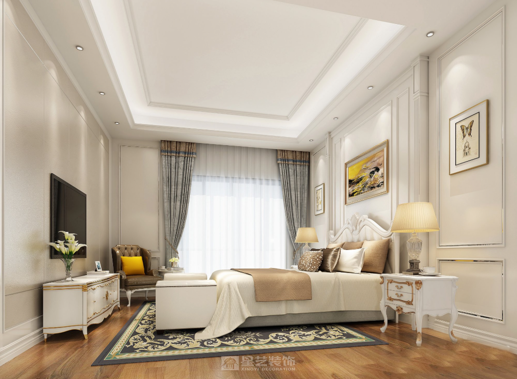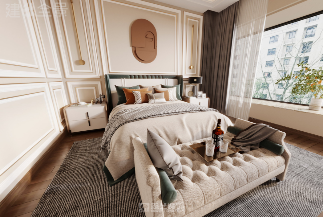 本设计以现代轻奢为核心,融合法式轻奢的精致线条与现代家居的实用功能。客餐区采用开放式布局,米白色护墙板搭配大理石纹理饰面,勾勒出优雅的空间基底;焦糖色绒布餐椅、宝蓝色单椅形成撞色视觉焦点,金属雕花、水晶装饰等细节点缀其中,糅合了奢华质感与现代简约。自然花艺与艺术摆件的融入,让空间在精致奢华中兼具生活温度,打造出兼具仪式感与舒适度的现代家居体验。