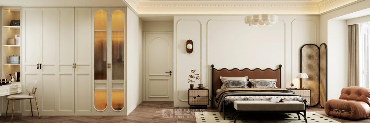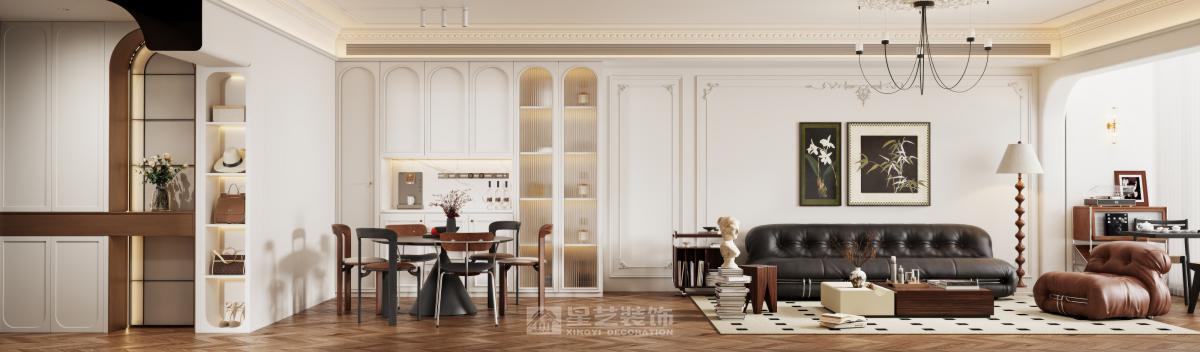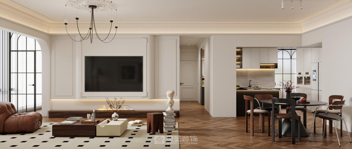 以 “东西方美学的时空对话” 为核心,摒弃元素堆砌,将法式古典的精致仪式感与中式传统的内敛意境深度融合。既延续法式对空间秩序、线条韵律的追求,又萃取中式 “天人合一” 的哲学思想,通过材质碰撞、色彩调和、细节呼应,打造兼具浪漫情怀与东方禅意的复古空间,适配现代生活的功能需求与审美诉求。