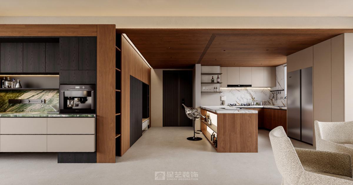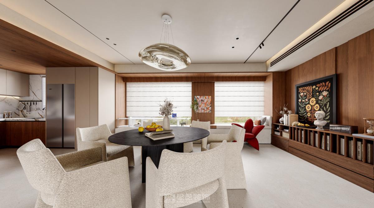 以中古风为魂,深色调为骨。莱姆石地面沉淀时间纹理,洞石墙体流淌自然韵律,温润木饰面包裹空间,共同构筑沉静而富有故事感的栖居意境。