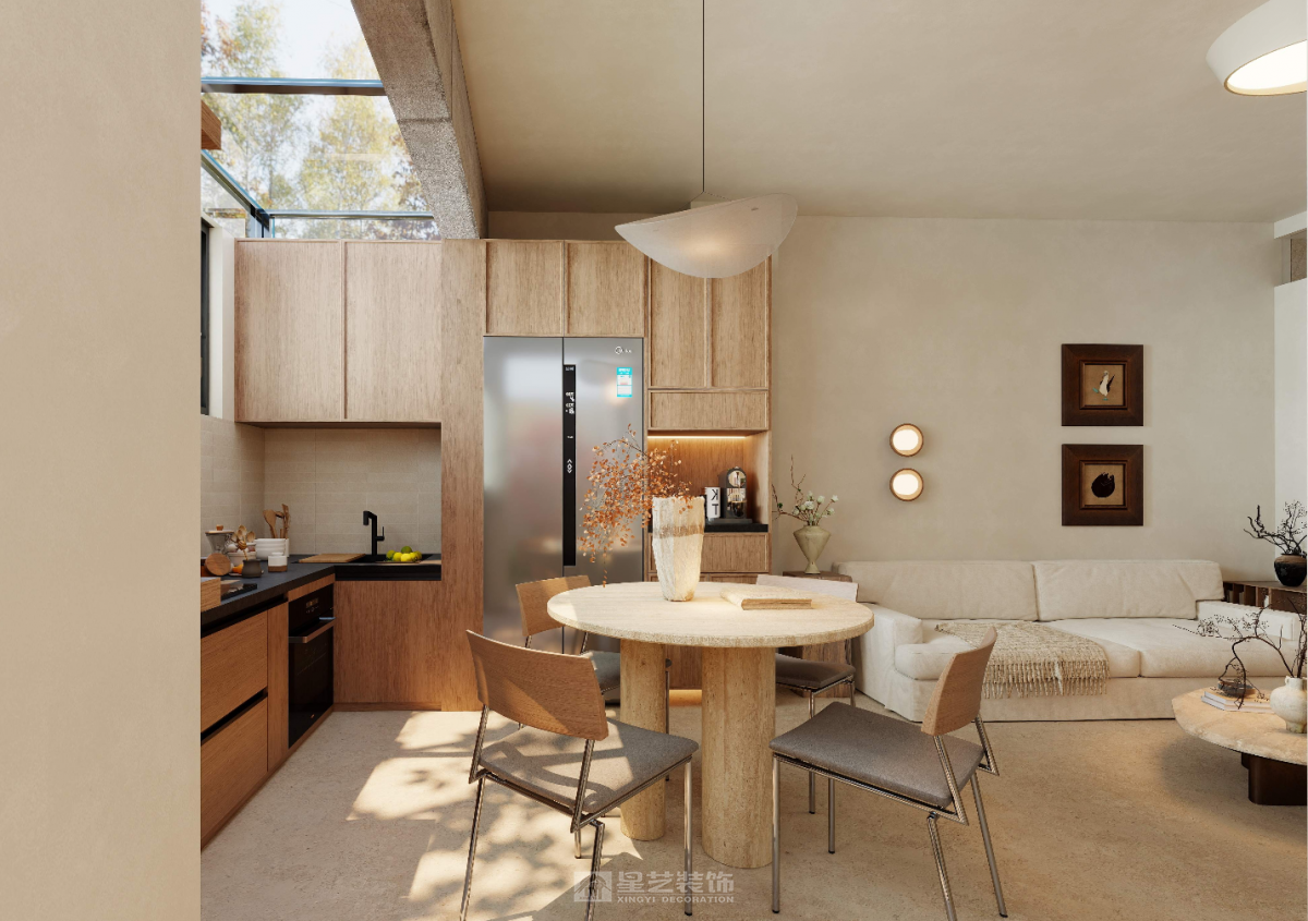 以时光肌理为笔,海洋板温润铺底,骨骼线勾勒轮廓,莱姆石与微水泥交融出质朴底色,于静谧中沉淀侘寂之美