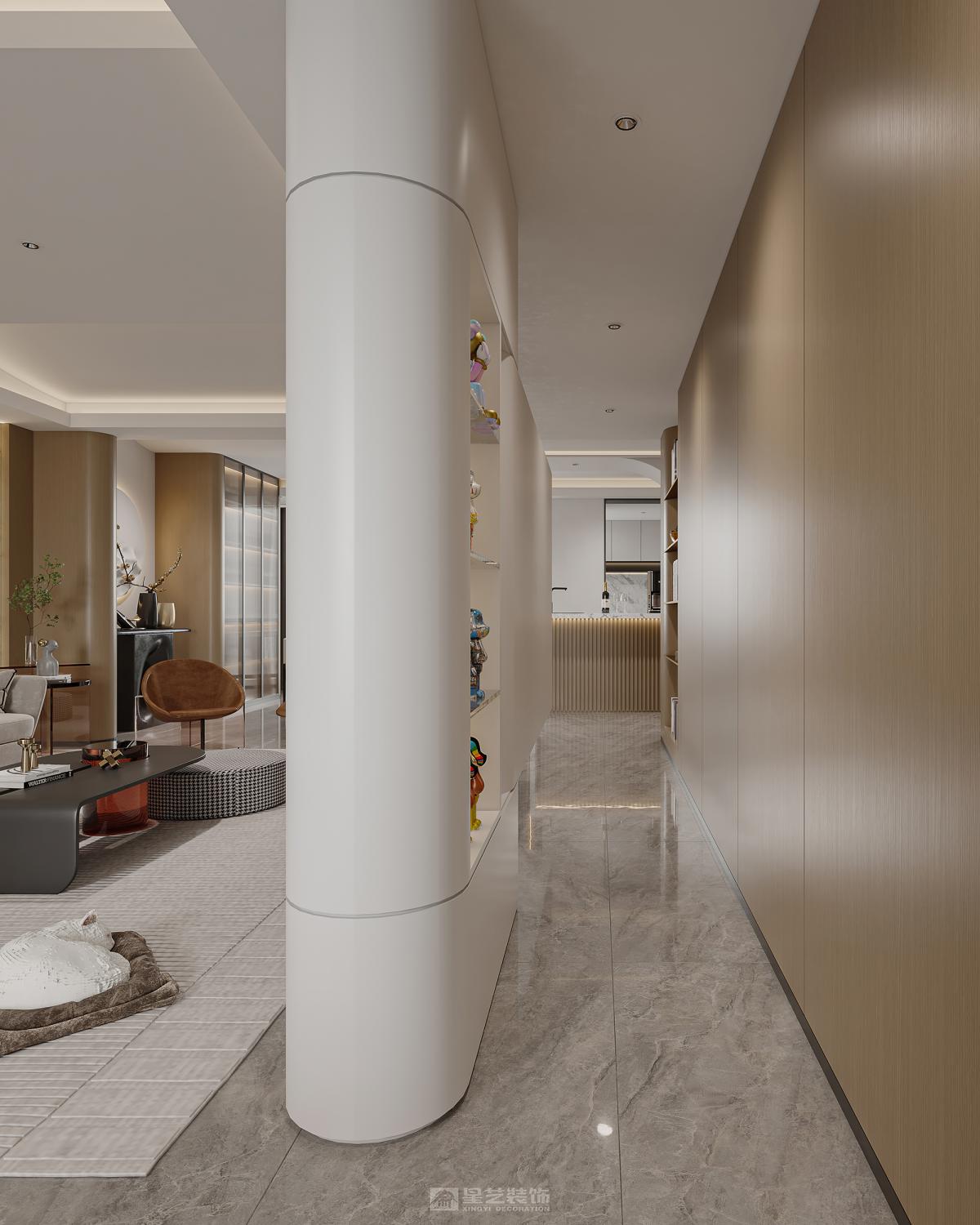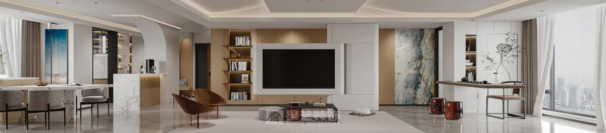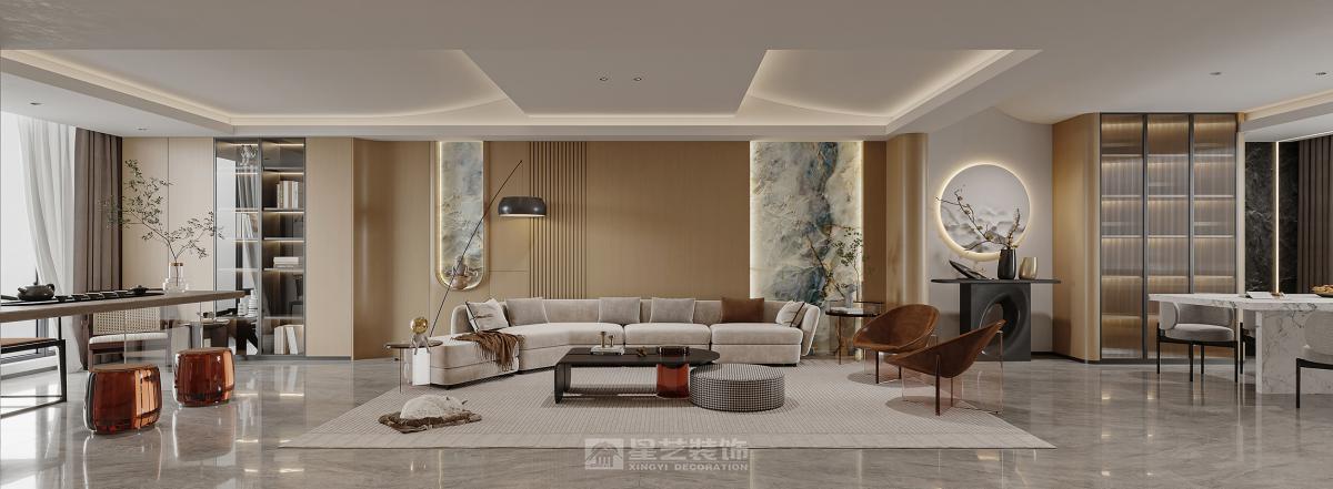 业主年纪不大,希望空间可以开阔一些。设计上大胆合理地利用空间,将空间打开,使茶室、客厅、餐厅、阳台联通 。