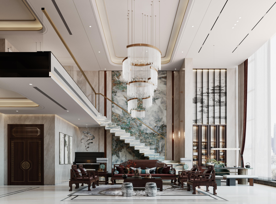站在二楼,看着客厅大挑空和一线江景,宛如身临山巅,俯瞰众山小的气派。