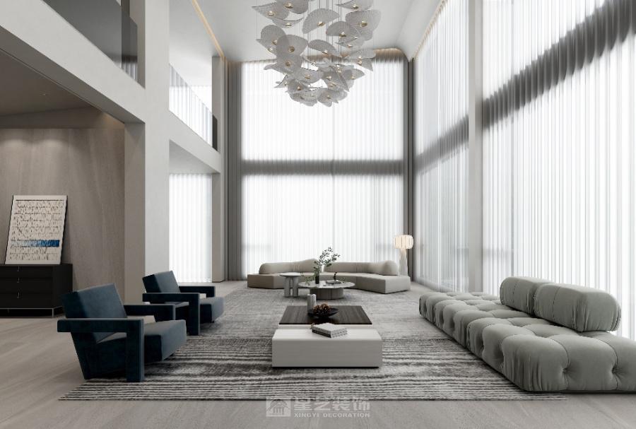 以 “极简轻奢 + 光影共生” 为核,通顶帘幕引自然光铺陈空间,低饱和色调与柔态家具呼应,营造松弛且精致的现代大宅场域