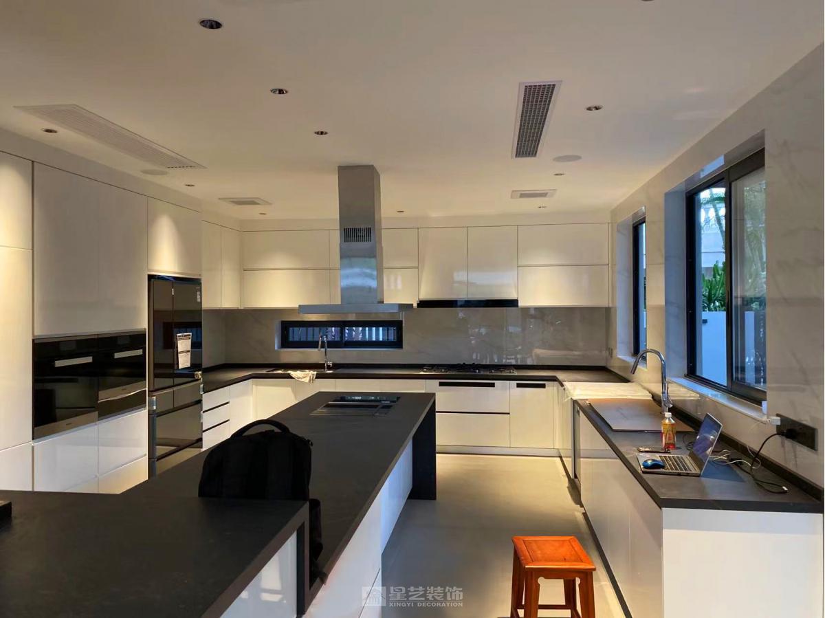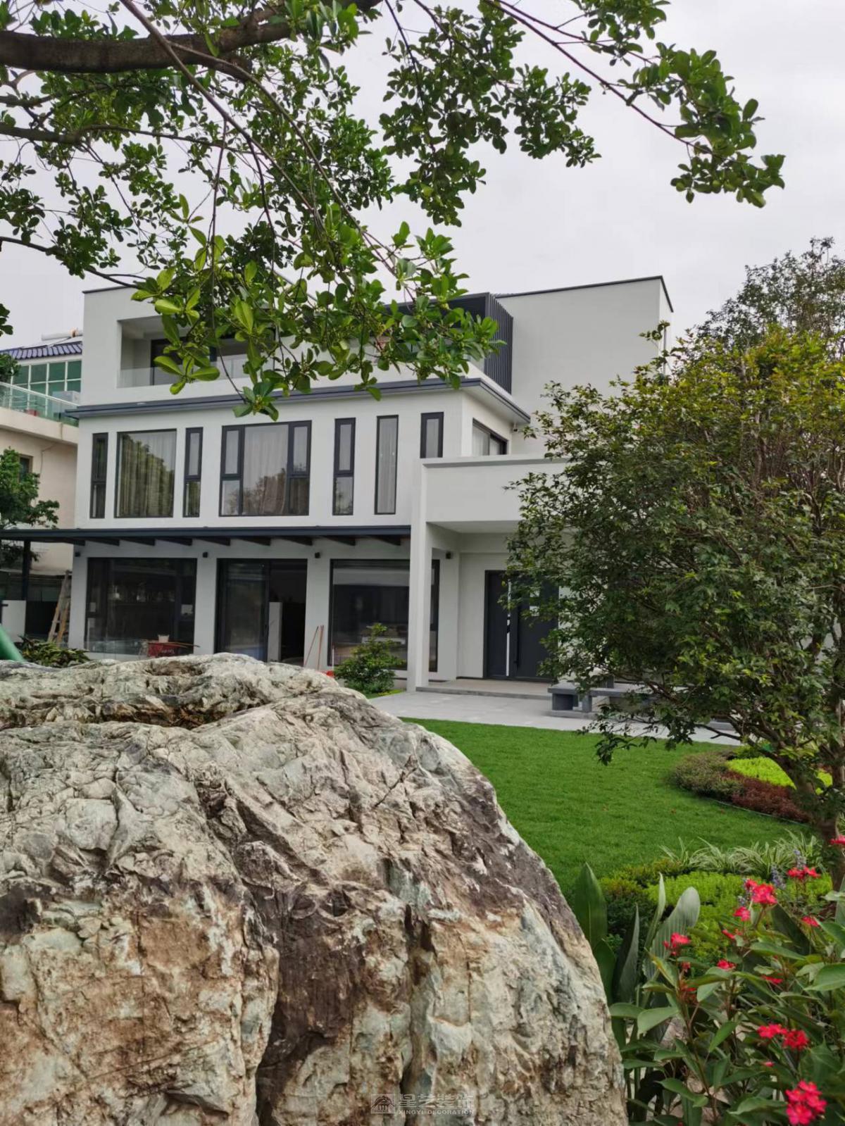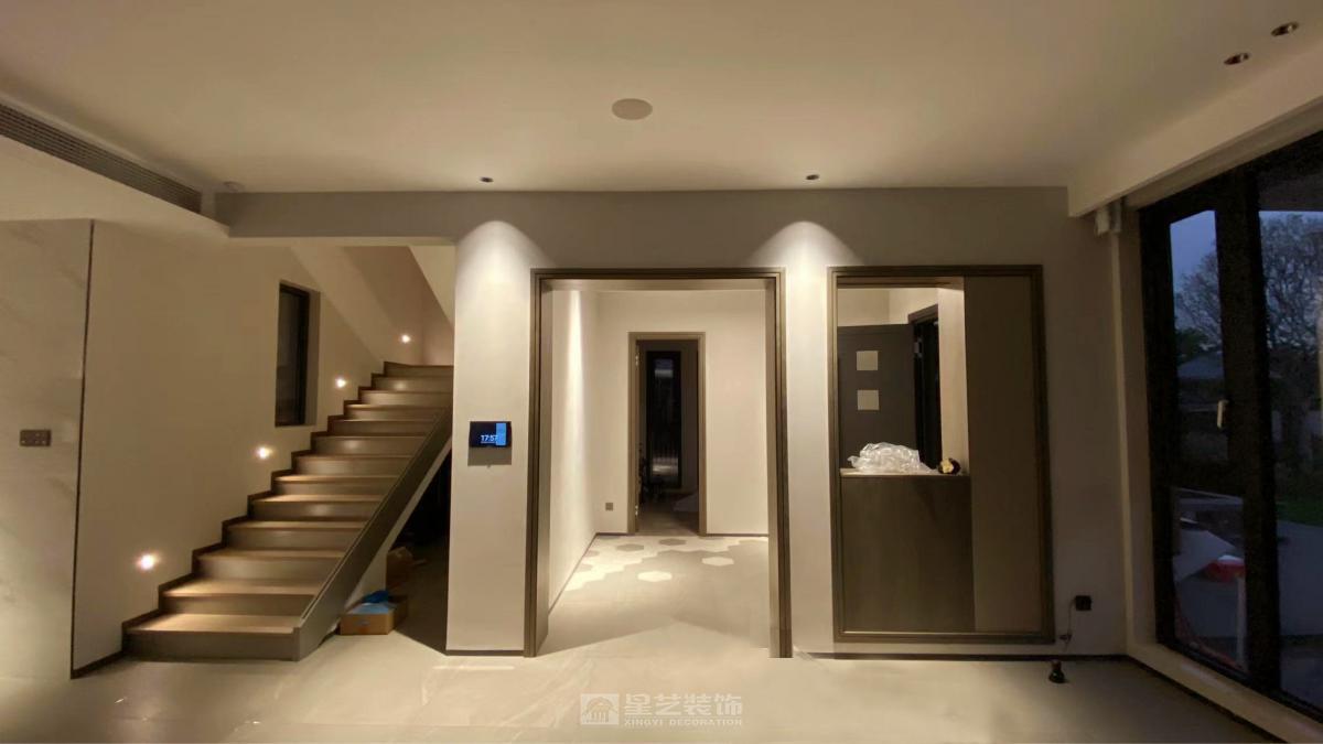 项目定位:为归国金融行业成功人士打造的江景私宅,融合现代极简外观与意式轻奢内装,彰显低调奢华的生活品质。 外观改造:摒弃原有欧式繁复线条,采用现代黑白灰三色为主基调,以大面积纯净白墙打底,搭配深灰色金属线条勾勒建筑轮廓,局部嵌入黑色石材饰面增强质感。最大化保留江景视野,将阳台、落地窗设计为简洁的几何形态,让建筑与江水、天空形成利落的视觉呼应,呈现出沉稳大气的现代美学气质。 室内设计:遵循意式轻奢风格,以简洁大气为核心原则。空间布局上强调通透感,采用开放式客餐厅设计,搭配大幅落地窗引入江景与自然光;色彩延续外观的黑白灰基调,通过浅灰色大理石地面、白色哑光墙面、黑色金属家具框架构建空间骨架。软装细节处融入意式经典元素,如丝绒质感的沙发、黄铜材质的灯具、艺术感十足的抽象挂画,搭配少量温润的木饰面中和冷硬感,既满足金融从业者对理性秩序的追求,又营造出舒适雅致的生活氛围。 功能规划:兼顾社交与私密需求,一层设置开放式客餐厅与江景露台,满足会客、休闲需求;二层为主卧套房与书房,书房配备整面落地窗,打造兼具办公与观景功能的静谧空间;地下空间规划为酒窖与健身区,契合业主对高品质生活的追求。 设计理念:以“简约而不简单”为核心,通过黑白灰的极致搭配与意式轻奢的细节雕琢,让建筑与江景相融,空间与生活共生,为业主呈现一处兼具理性格调与温暖质感的江景居所。