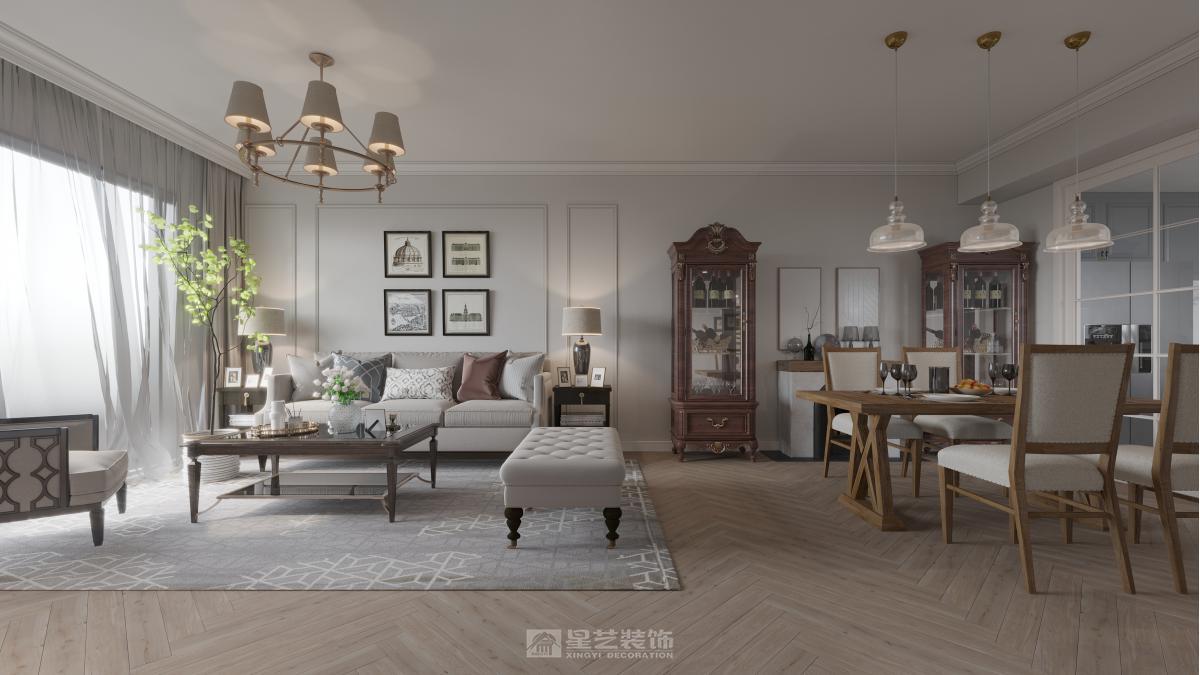 美式设计将经典元素与当代审美和智能生活需求相结合。 总而言之,现代美式设计理念的精髓在于,它不局限于某种固定的形式,而更是一种追求舒适、自由、个性化表达的生活态度。 色彩与材质 •主色调:优先选择中性色、大地色系,如米色、灰色、浅棕色 •点缀色:可用深蓝、暗红、墨绿或金属色进行局部提亮。 •家具特点:注重舒适性与实用性,尺寸通常较为宽大 •空间布局:追求开放通透,常见开放式厨房与客餐厅一体化设计 •点睛之笔:一个质感厚重的实木餐桌或一张宽大舒适的皮质沙发,能迅速奠定空间基调