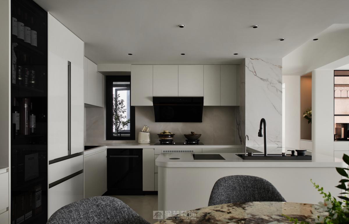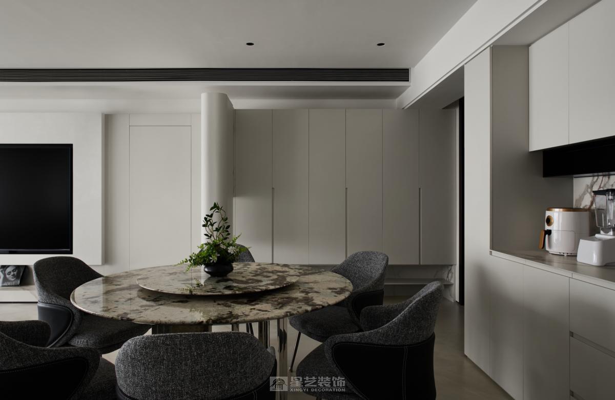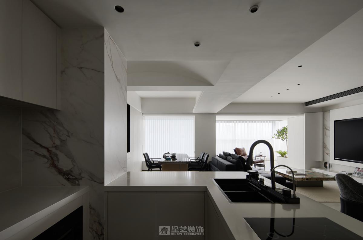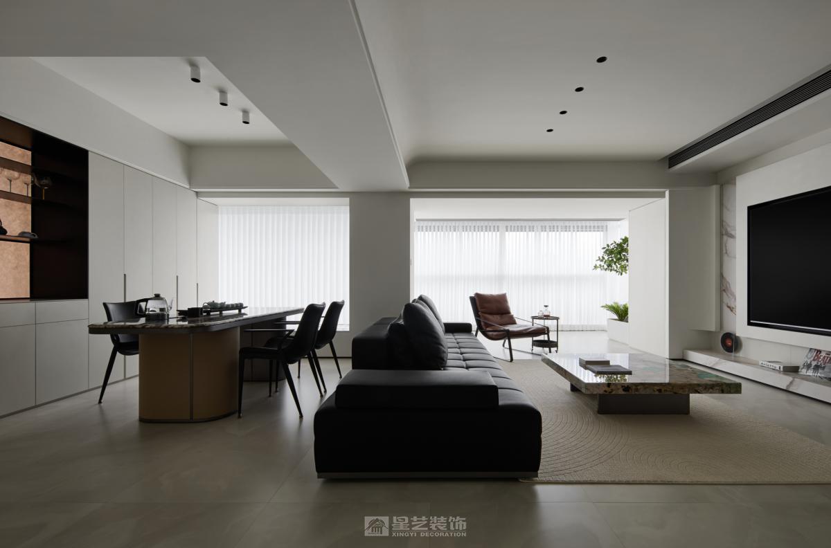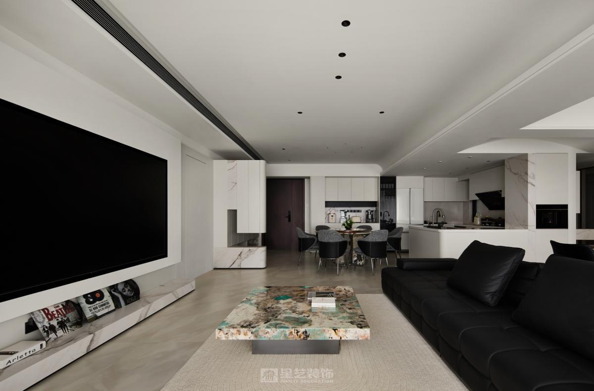 **开放通透:** 尽量减少不必要的隔断(非承重墙),创造流动的空间感,如客餐厅一体化、开放式厨房(需考虑油烟问题)。 **动线流畅:** 确保人在空间中的活动路径清晰、便捷、无阻碍。 **功能分区明确:** 即使开放,也要通过家具、灯光、地面材质等软性方式暗示不同功能区域。 **极简结构:** 避免复杂的吊顶造型(如多层吊顶、复杂灯槽),采用平顶。墙面、地面、顶面线条力求干净利落。