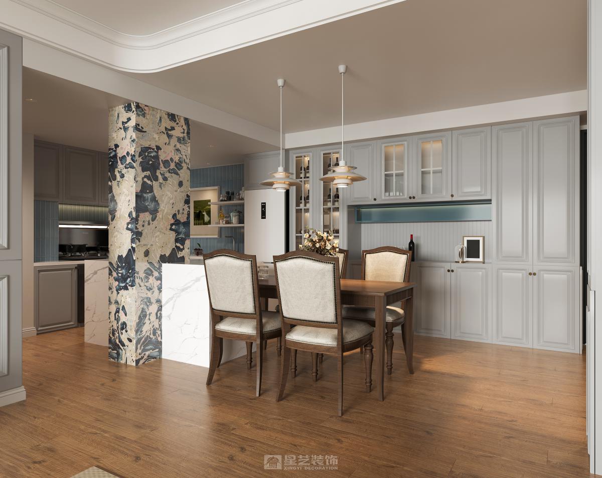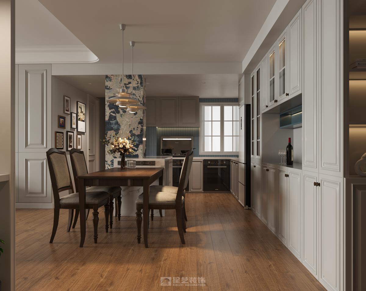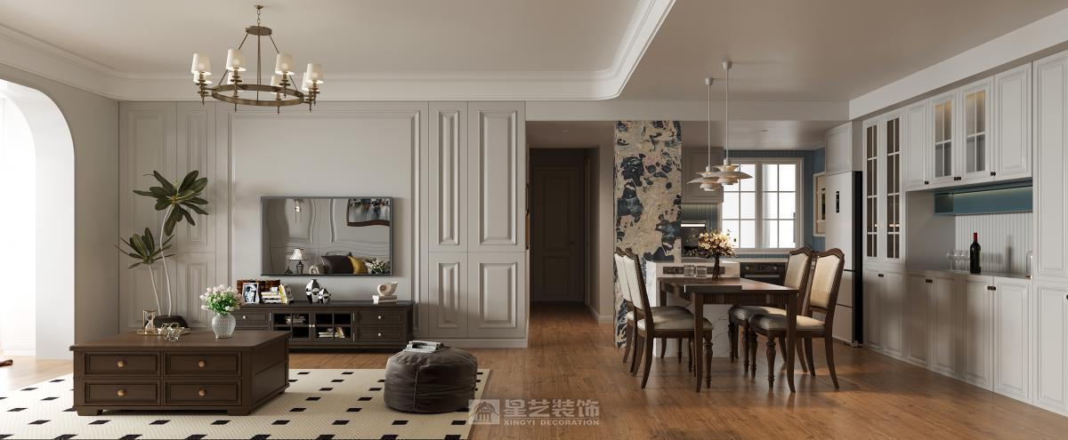 业主一直对美式家具都非常热爱。前期确定好软装,硬装与软装的协调性更高。落地还还原度也会更好。