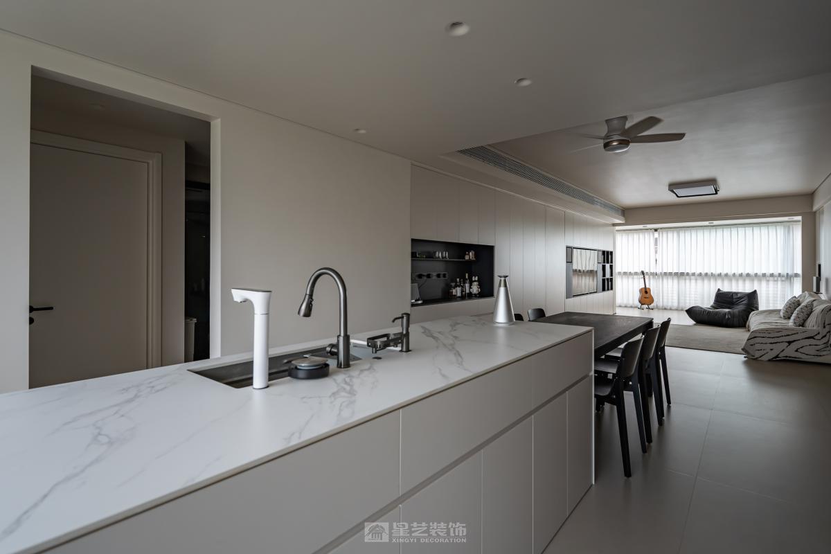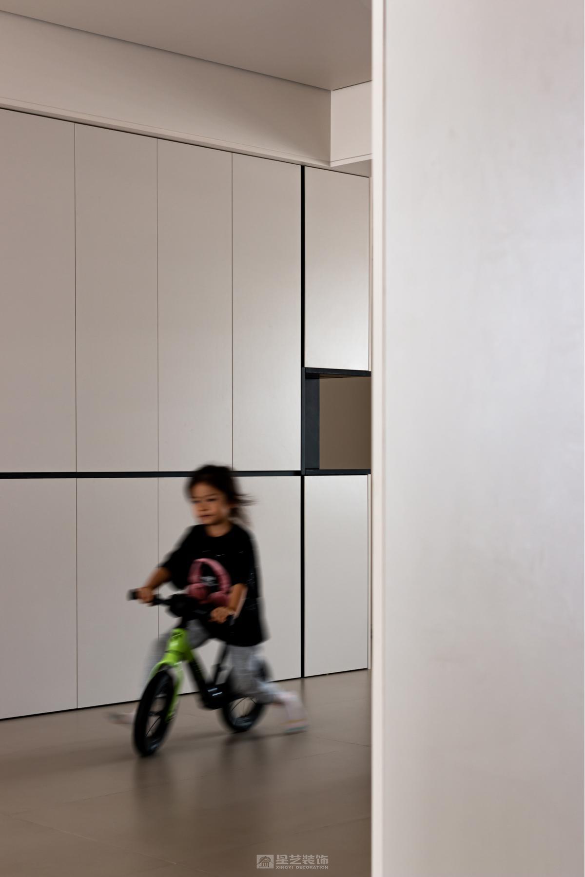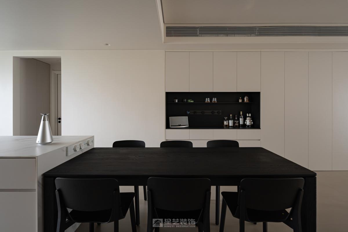 一具至高无上的黑方块,并不象征任何东西,它只是一种存在。黑方块,它的空无一物恰恰是它的充实之处。马列维奇的黑方块让我们体会到几何形体所带来的纯粹情感。这种情感在家居空间中的含蓄表达正是本案在探索的内容。功能和形式的相结合使得几何形体的正负关系得到恰当表达。