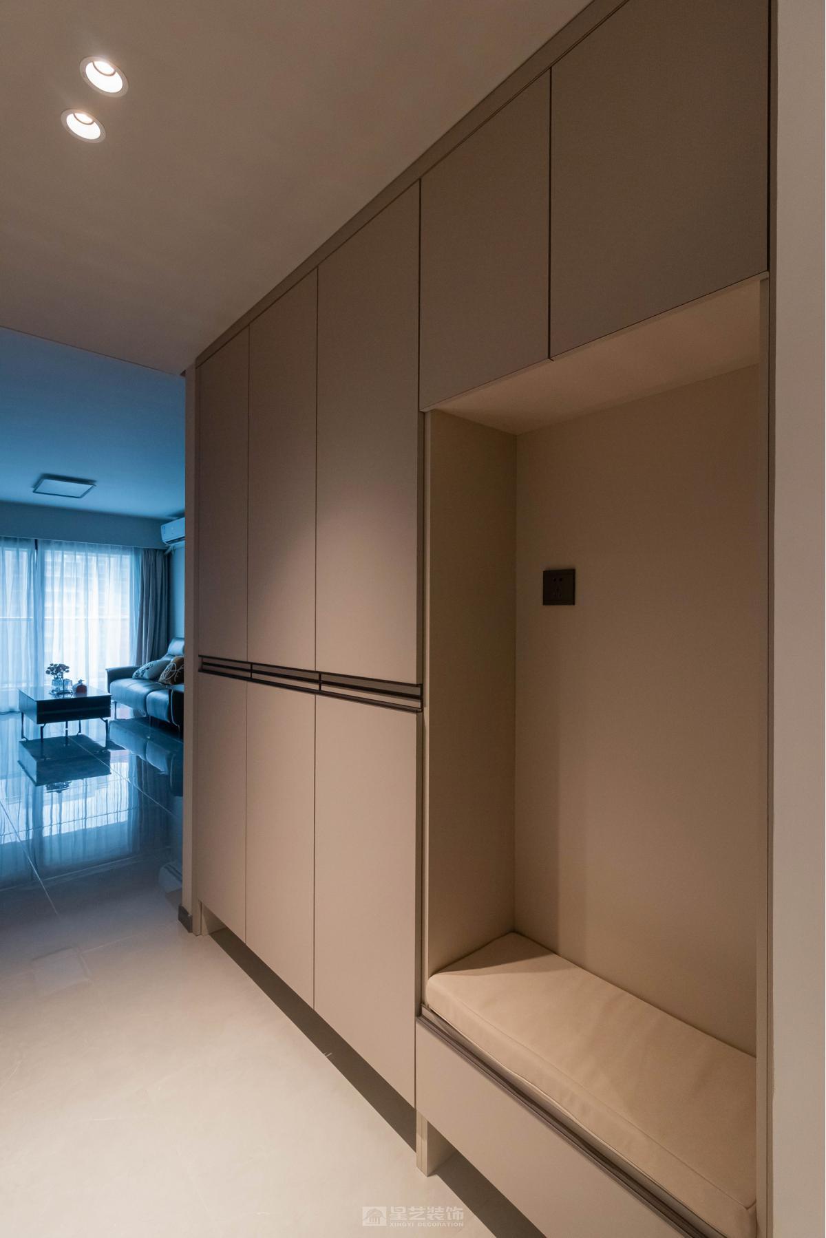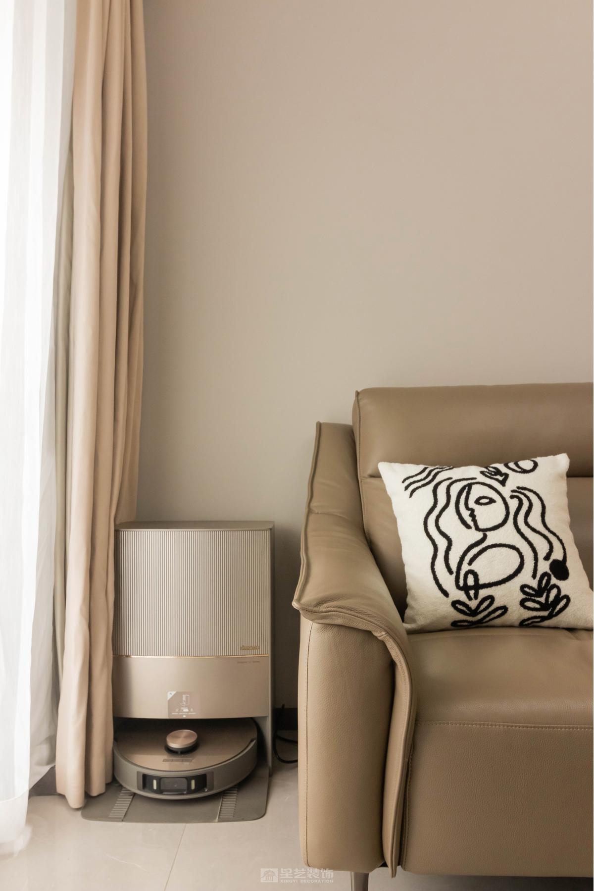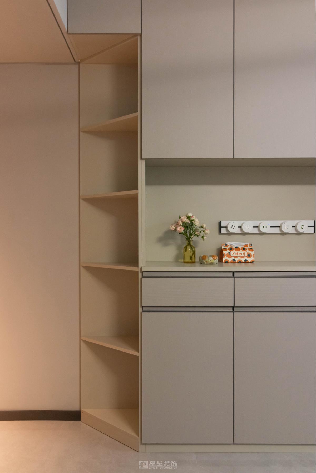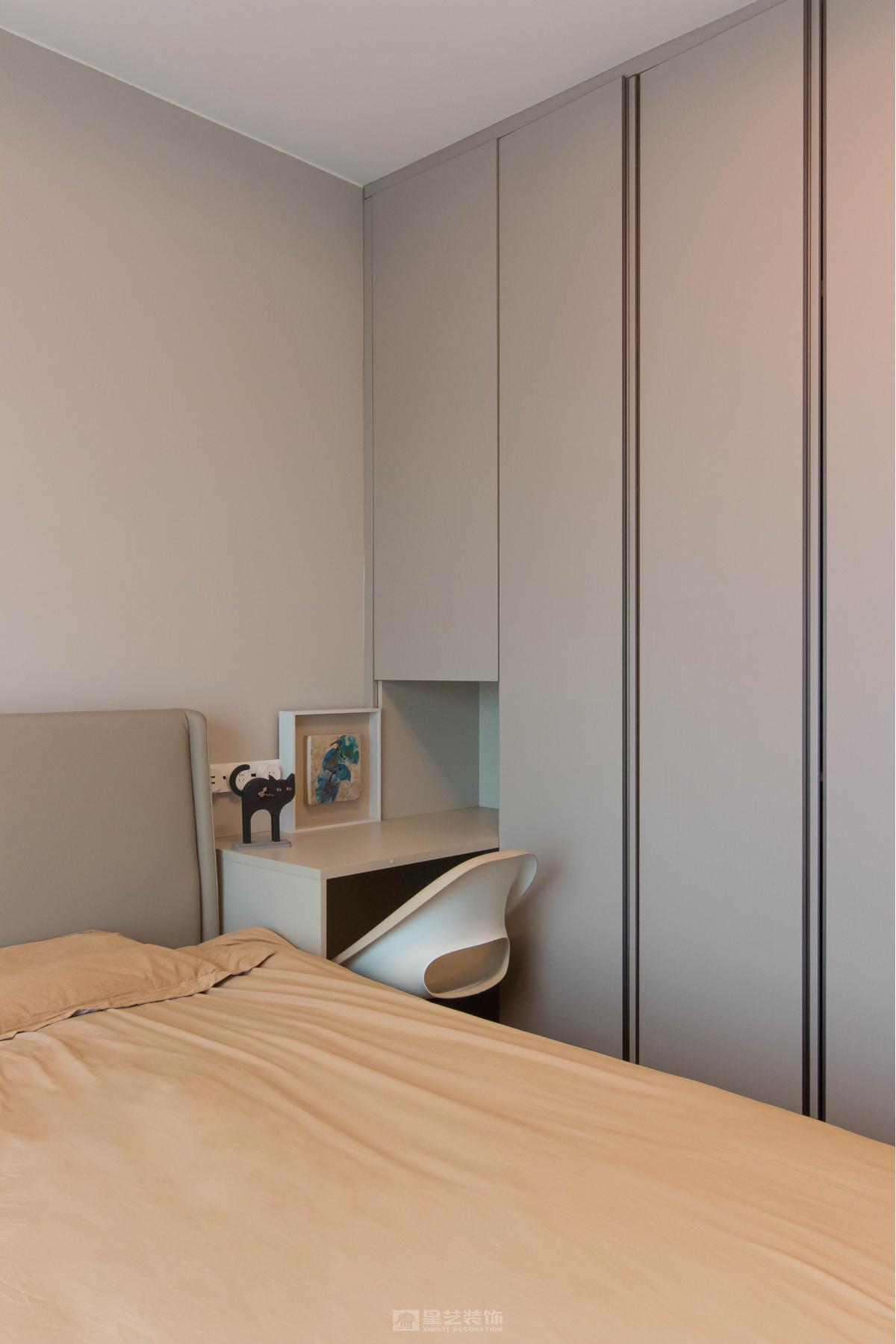 在精装房原有框架下,通过暖灰色系材质叠加丰富层次感。女主人的漆画不仅是装饰,更成为串联空间的线索,让冷静的现代风中流淌着温润的艺术气息,体现个性化居所气质。