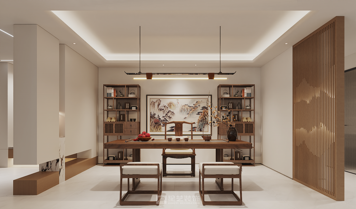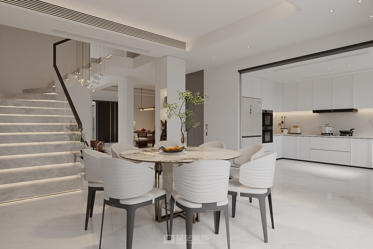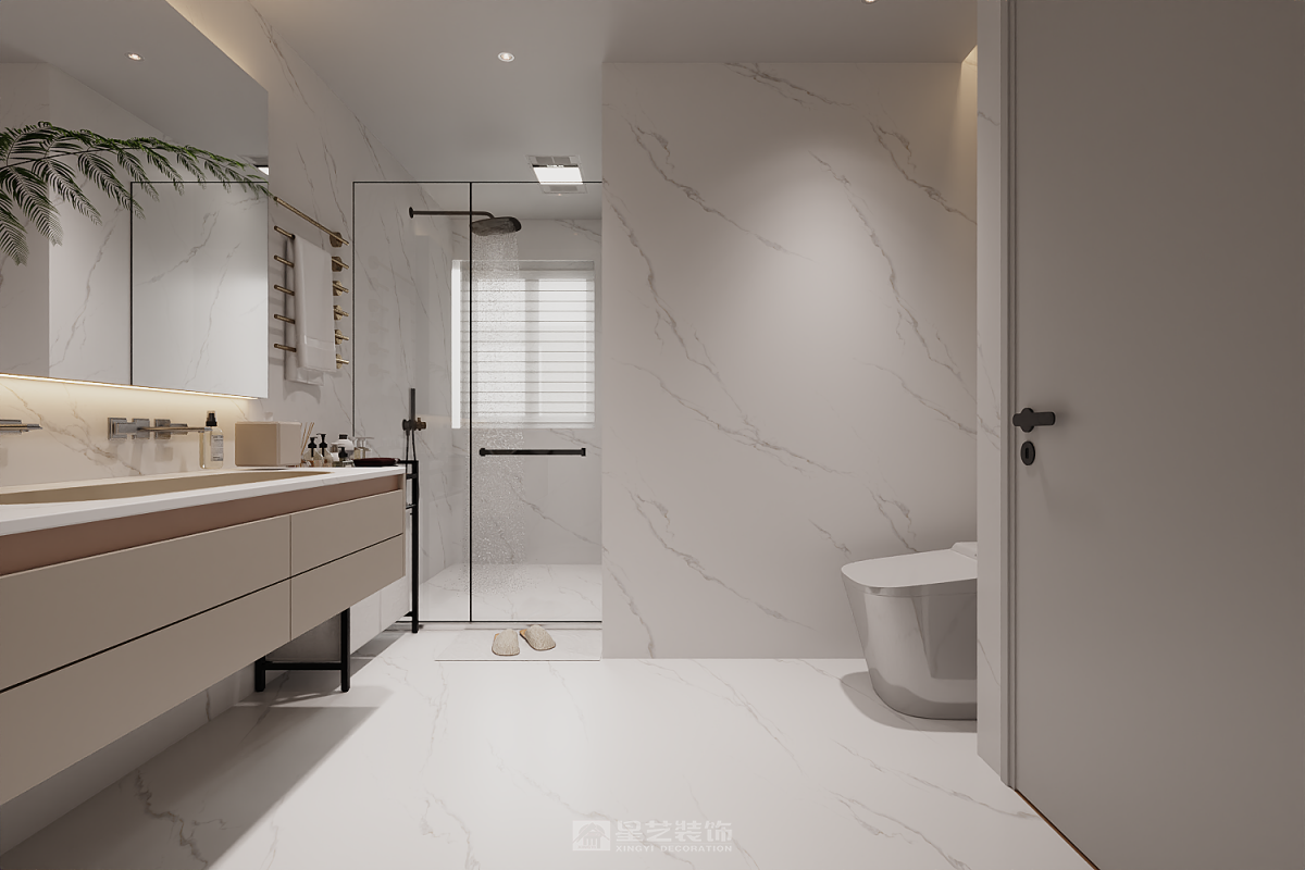 我们以 “暖白+原木” 为基调,摒弃繁杂,让材料本身诉说温柔。整个家不见顶天立地的压迫式柜体,每一个功能模块都化为轻盈的“悬浮盒子”,在光影交错间,营造出通透、灵动的层次感。