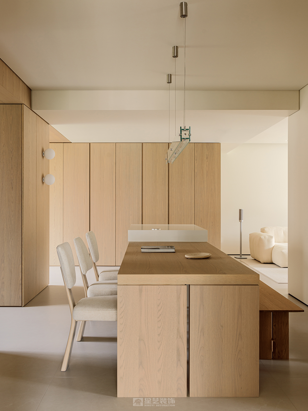 当极简家融入原木风,就是高级和生活并存的家,不失烟火气又不失质感。 客厅没有复杂的装饰设计,回归简单,才是家的常态,质朴的木头,柔软的布艺,它们静静的倾听着这个家里的温暖故事.