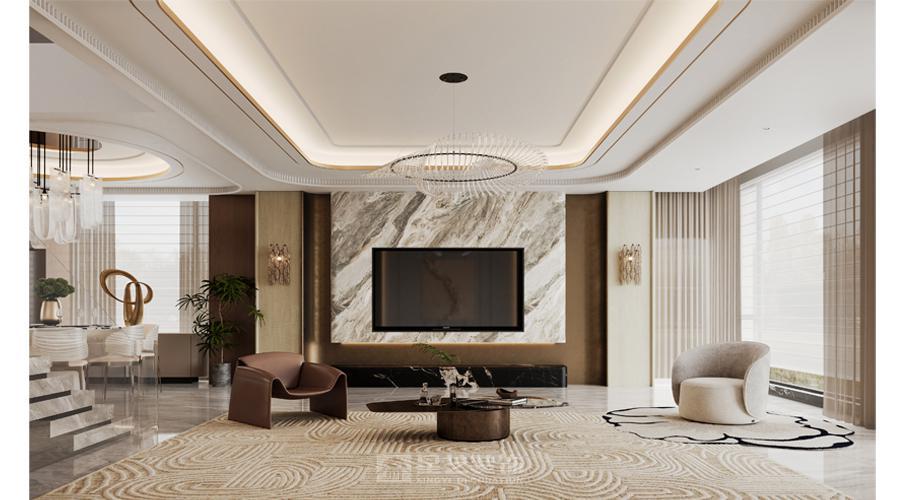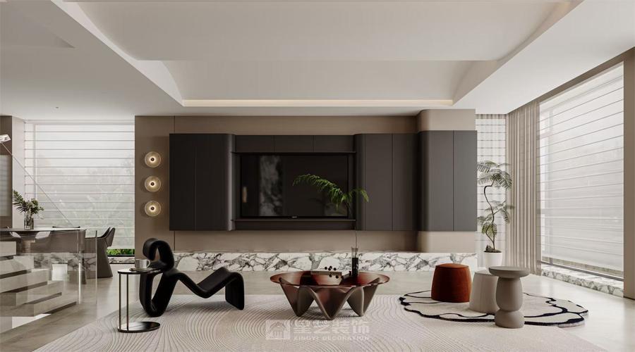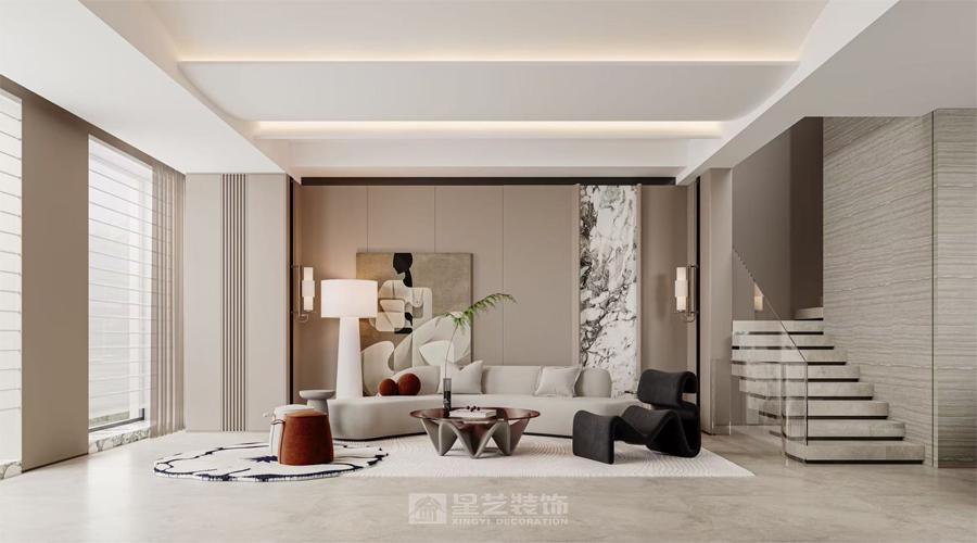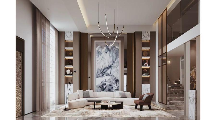 现代轻奢风格在色彩运用上独具匠心。它通常以中性色为基调,如高级灰、米白色等,这些颜色奠定了整个空间低调而优雅的氛围。然后,再通过少量的金属色,如金色或银色作为点缀,比如客厅装饰线条、灯具边框以及家具金属脚上的金色元素,瞬间提升了空间的奢华感。据色彩心理学研究显示,这样的配色方案不仅能营造出宁静舒适的生活环境,还能利用金属色的点缀吸引视线,满足人们对奢华的心理需求。