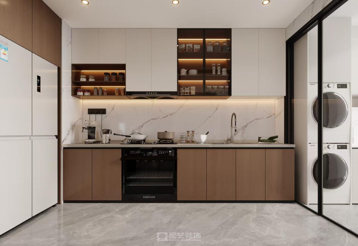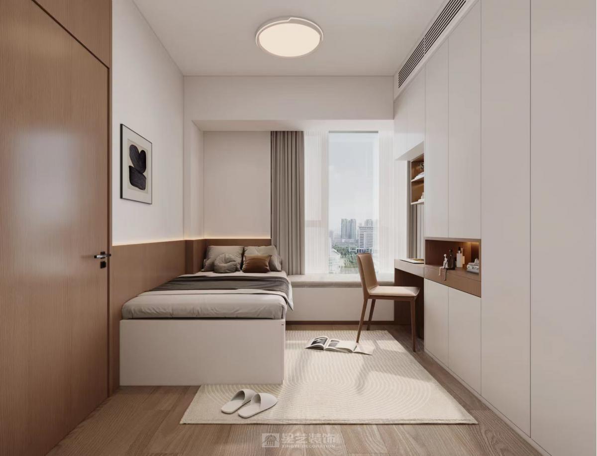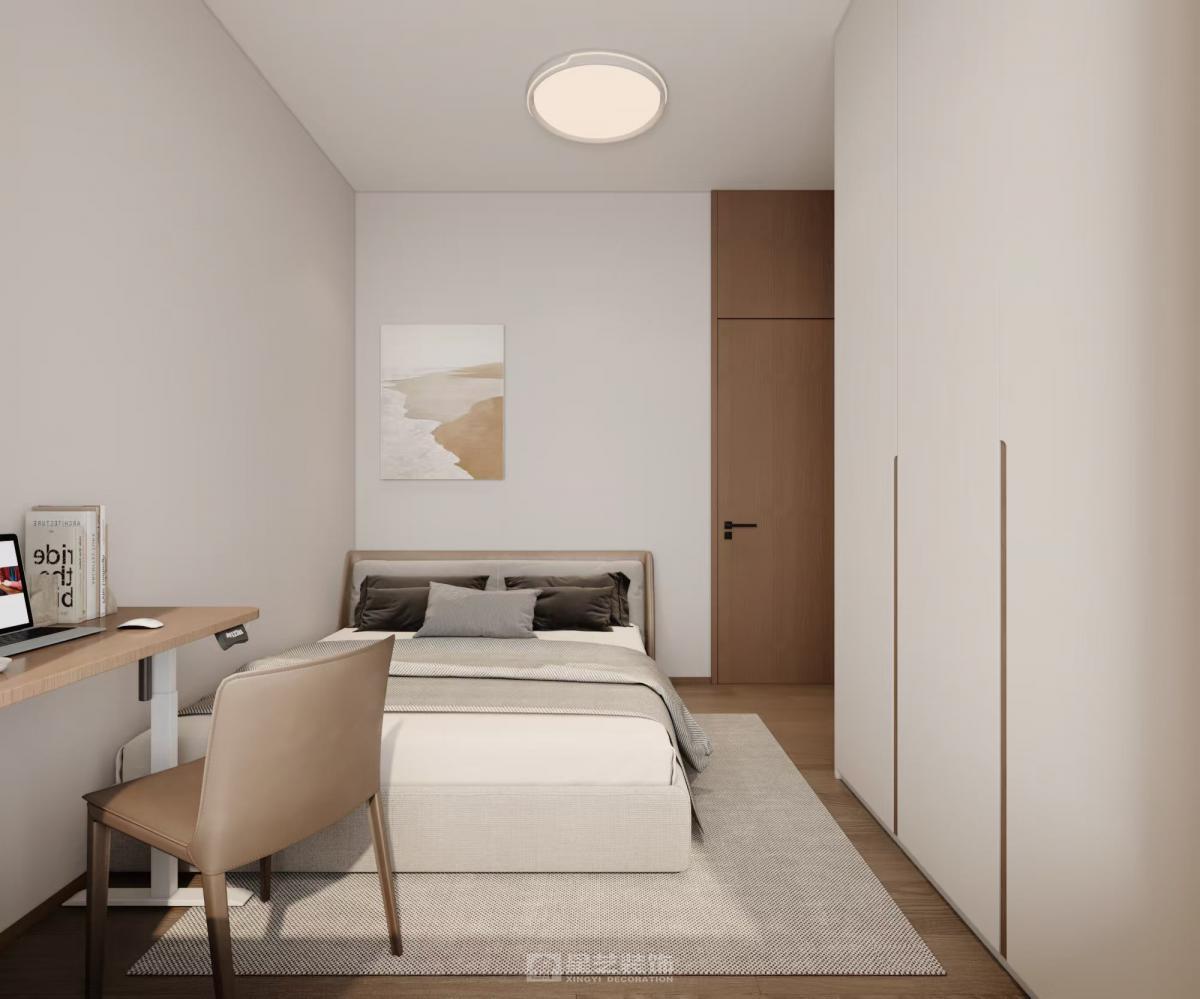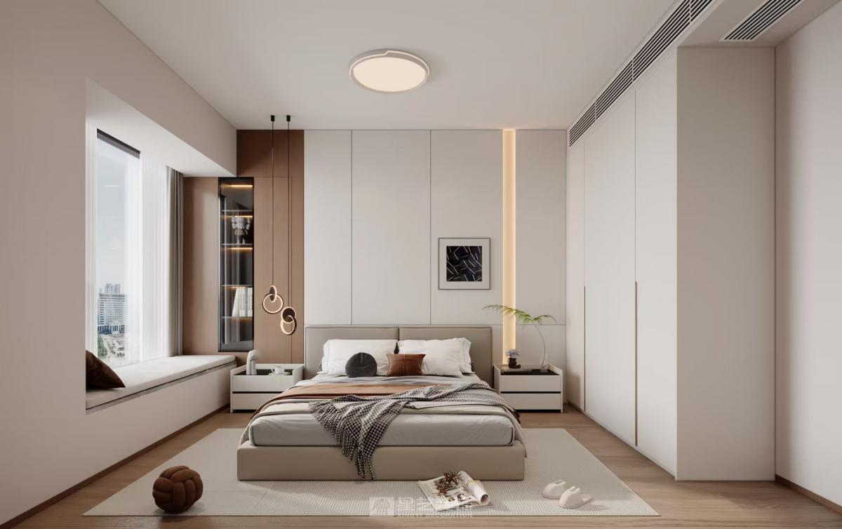打通客餐厨界限,拓宽视觉尺度。以浅灰为主色调,搭配原木饰面与金属细边,弱化硬装棱角。 定制嵌入式收纳系统化解小户型储物难题,软装选用低饱和色块点缀,兼顾美学与实用性,打造简约舒适的现代宜居空间。