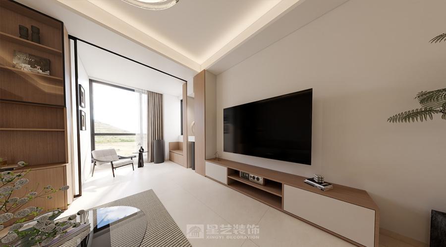 以现代简约为骨架,融入东方温润质感,浅米布艺沙发与原木柜体形成材质呼应,黑纹石材与玻璃茶几增添精致感。无主灯设计搭配环形吊灯,光线层次柔和,通透的空间动线结合自然采光,让简约空间兼具舒适与雅致的生活气息。