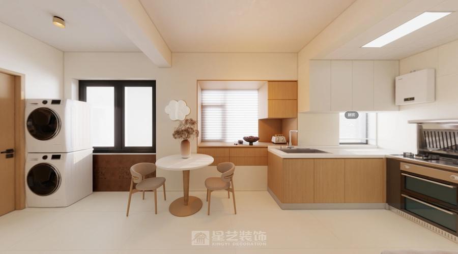 以自然简约为核心,打造餐厨与休闲区的一体化通透空间。原木柜体温润质朴,与浅米色布艺沙发形成材质与色调的和谐呼应,简洁的线条勾勒出利落的空间轮廓。无冗余的装饰设计聚焦实用功能,自然光的引入让空间更显开阔,在简约中营造出舒适且充满生活气息的居家氛围。