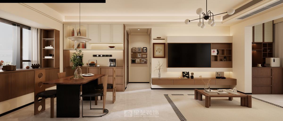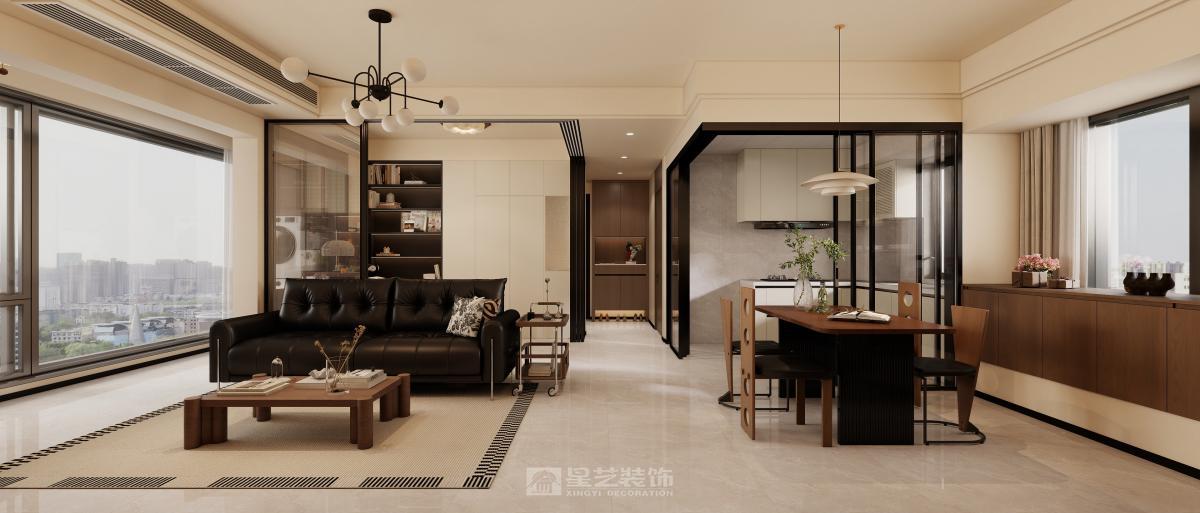 业主倆是00后小年轻,喜欢接纳度高的东西,客餐厅喜欢中古风,主卧喜欢法式风。设计上,在硬朗的直线中注入柔和的弧形线条,以胡桃色的沉稳为基调,搭配藤编棉麻的天然材质,通过材质的自然碰撞,营造出一种“不费力”的自然感。