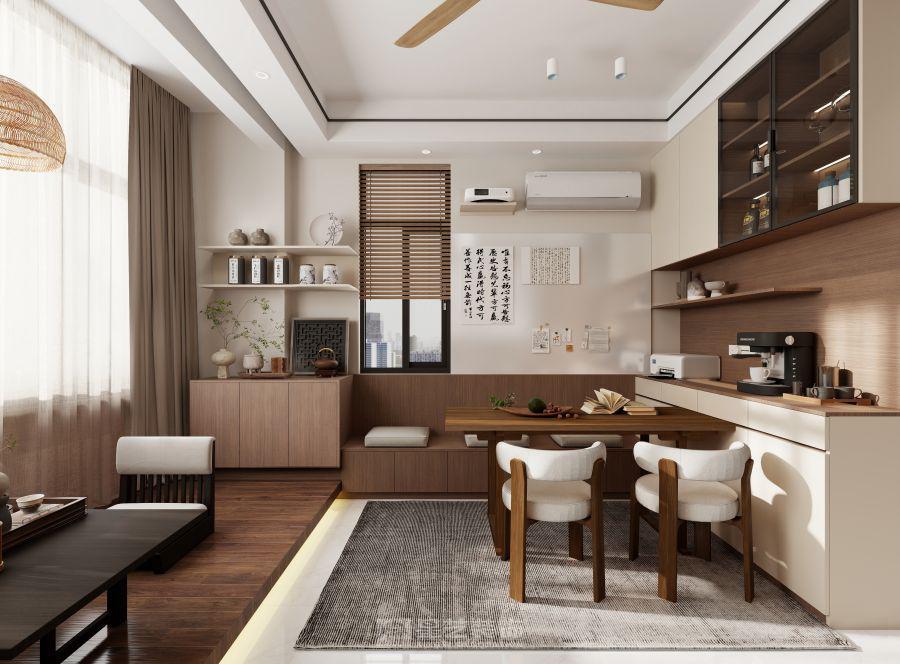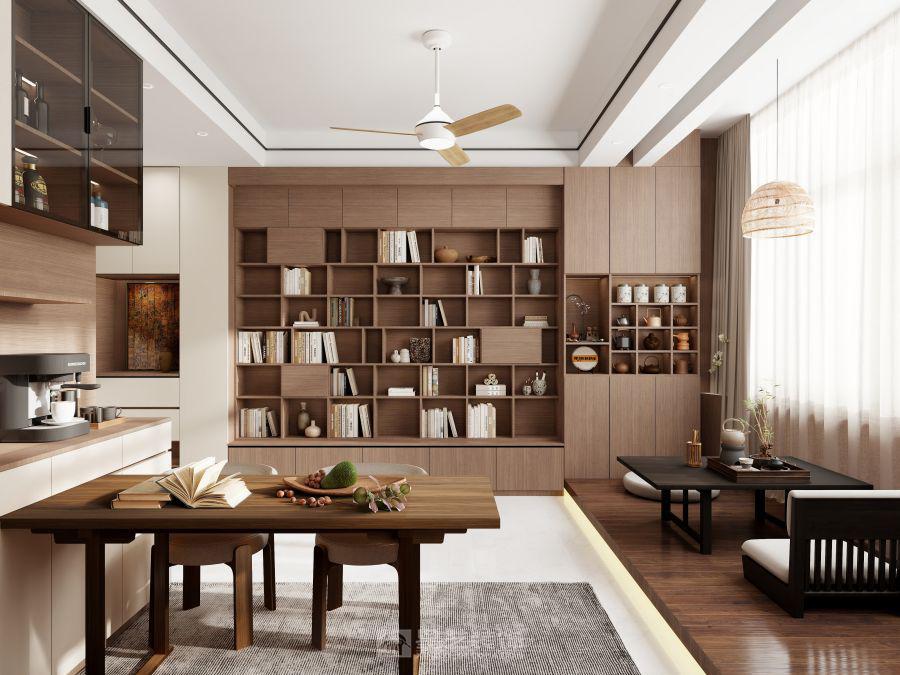 业主夫妻都是人民教师,有喝茶的习惯,在阳台区放置传统茶桌感觉不自在,那么绿意盎然的窗景也浪费,业主找到我的时候,我是带着解决方案上门沟通的,一番沟通,我帮业主规划了一个临窗的休闲地台,可喝茶,打坐,业主家里书籍多,也想培养小孩的阅读习惯,所以设计了满墙书柜,同时加个小心思,书柜最下面做深地柜,可以踩着地柜去拿书,同时还能兼顾投影幕布的位置,刚好鞋柜、幕布、地台齐平了,视觉上也舒服。这样客厅可休闲可会友,可一家人一起看影音,家人聚一起的时间多了。