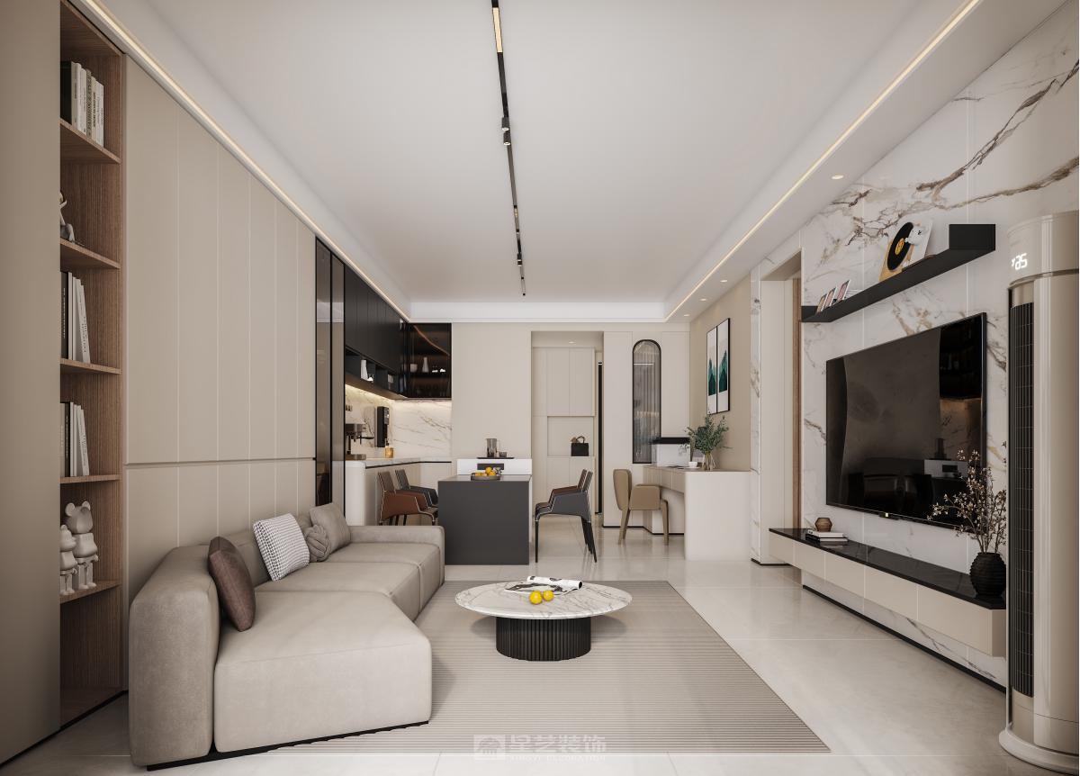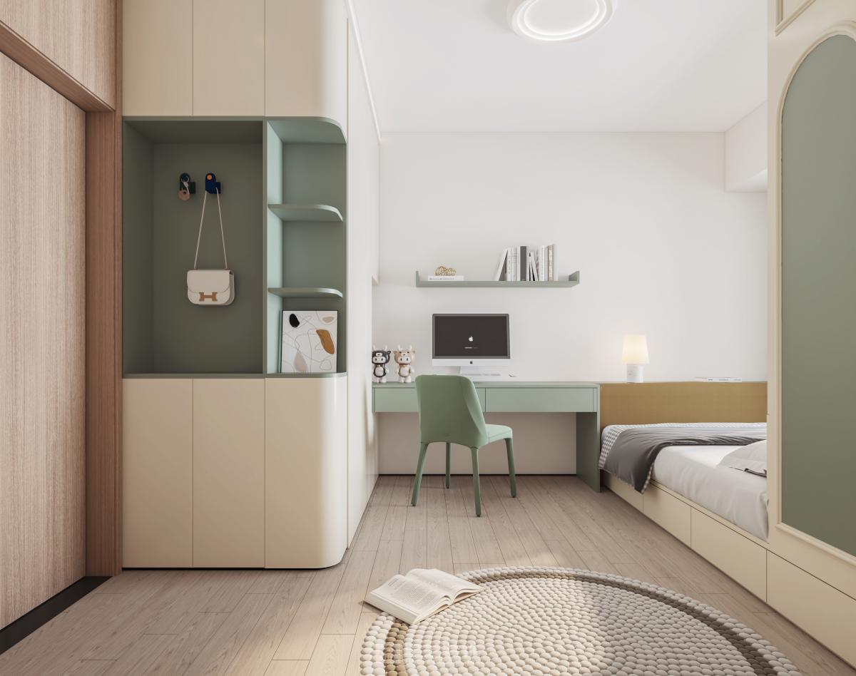 男业主为IT理工男,在家办公时间比较多,女业主为教师,有一双儿女,缺一书房,所以客厅设有办公空间,同时兼顾聚会,阅读等多项功能。整体以简约为主,没有过多的修饰,在小孩房中予以活泼的色彩,映衬年轻活力,主人房则以沉稳呈现。