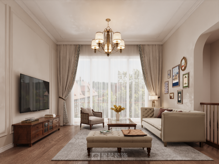 本方案以现代美式风格为核心,融合传统美式的自由随性与现代设计的简约精致,打造兼具舒适质感与实用功能的别墅空间。 空间布局上,摒弃繁复隔断,采用开放式客餐厨一体化设计,搭配高挑空客厅与大面宽落地窗,引入充足自然光线,营造通透开阔的视觉效果。材质选择以温润的实木地板、复古文化石墙面为主,搭配浅灰、米白等柔和色调,辅以焦糖色皮质沙发、复古金属吊灯等软装,平衡复古韵味与现代简约。 细节处理上,简化传统美式的雕花线条,以利落的几何造型、简洁的硬装线条凸显现代感;同时保留美式风格的经典元素,如复古百叶窗、复古风踢脚线、美式乡村风壁炉造型,赋予空间温度与记忆点。 功能分区兼顾家庭成员的多元需求,设置独立书房、休闲影音室与亲子活动区,既满足日常起居,又预留出独处与互动的弹性空间。整体设计旨在打破风格边界,让别墅成为承载生活本真、兼具美学与实用的理想居所。