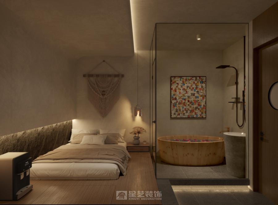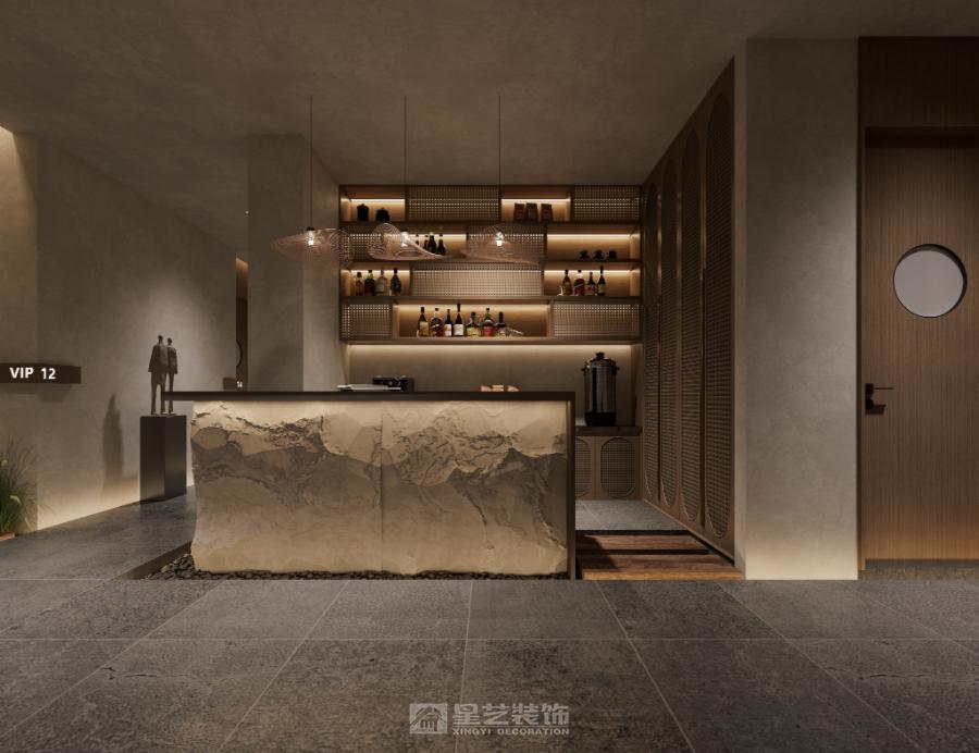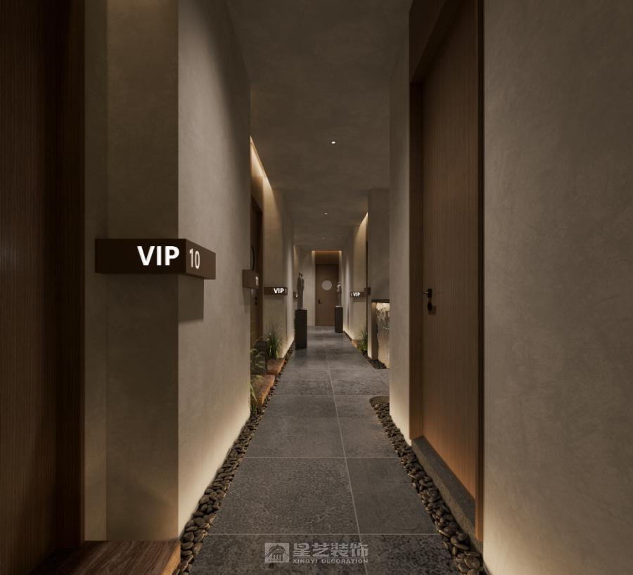 “君悦”以“回归自然淳朴,悦享松弛时刻”为核心,为客户打造一处隔绝外界纷扰的休闲空间。468平方的场域中,诧寂风的肌理与“君悦”的雅致感相融,用材质本真与光影温度,诠释“大隐于市”的放松哲学。 “君”呼应男士客群的沉稳气质,“悦”指向身心舒展的核心诉求。设计以诧寂风为载体,摒弃过度装饰,通过材质的自然肌理、光影的柔和变化,让空间成为“卸下疲惫”的容器——在这里,无需刻意迎合,仅需跟随自然质感与松弛氛围,便能获得由内而外的放松。 地面选用水泥砖作为主材质,保留混凝土的原始肌理,表面略带粗犷却不粗糙,赤脚踩踏时能感受到温和的触感,既符合桑拿、按摩场景的实用性,又通过“未被过度打磨”的质感传递自然气息。 墙面与天花整体采用微水泥浇筑,无缝衔接的特性让空间线条更简洁,暖灰的基调自带柔和滤镜,随光影变化会呈现细微的明暗层次,像被时光轻拂过的痕迹,契合了诧寂风“不完美中的静谧”。 局部点缀,在茶水区吧台、按摩包间墙面等位置,嵌入夯土材质。夯土的颗粒感与微水泥的细腻形成对比,土黄色的温润色调为空间注入暖意,也暗合“回归土地”的淳朴意象。 灯光设计以“暗调氛围”为核心,拒绝强光直射,营造落日余晖里的松弛感,主照明采用隐藏式灯带与低照度筒灯,光线从天花缝隙、墙面凹槽中漫射而出,如同自然天光般柔和。 整体而言,“君悦”不追求视觉上的惊艳,而以“材质的本真、光影的温度、空间的松弛”为核心——在这里,男士们能暂时脱离快节奏的生活,在诧寂风的自然质感与落日般的暖光里,找回身心与自然的连接,这便是“君悦”的最终意义:无需刻意,自在即悦。