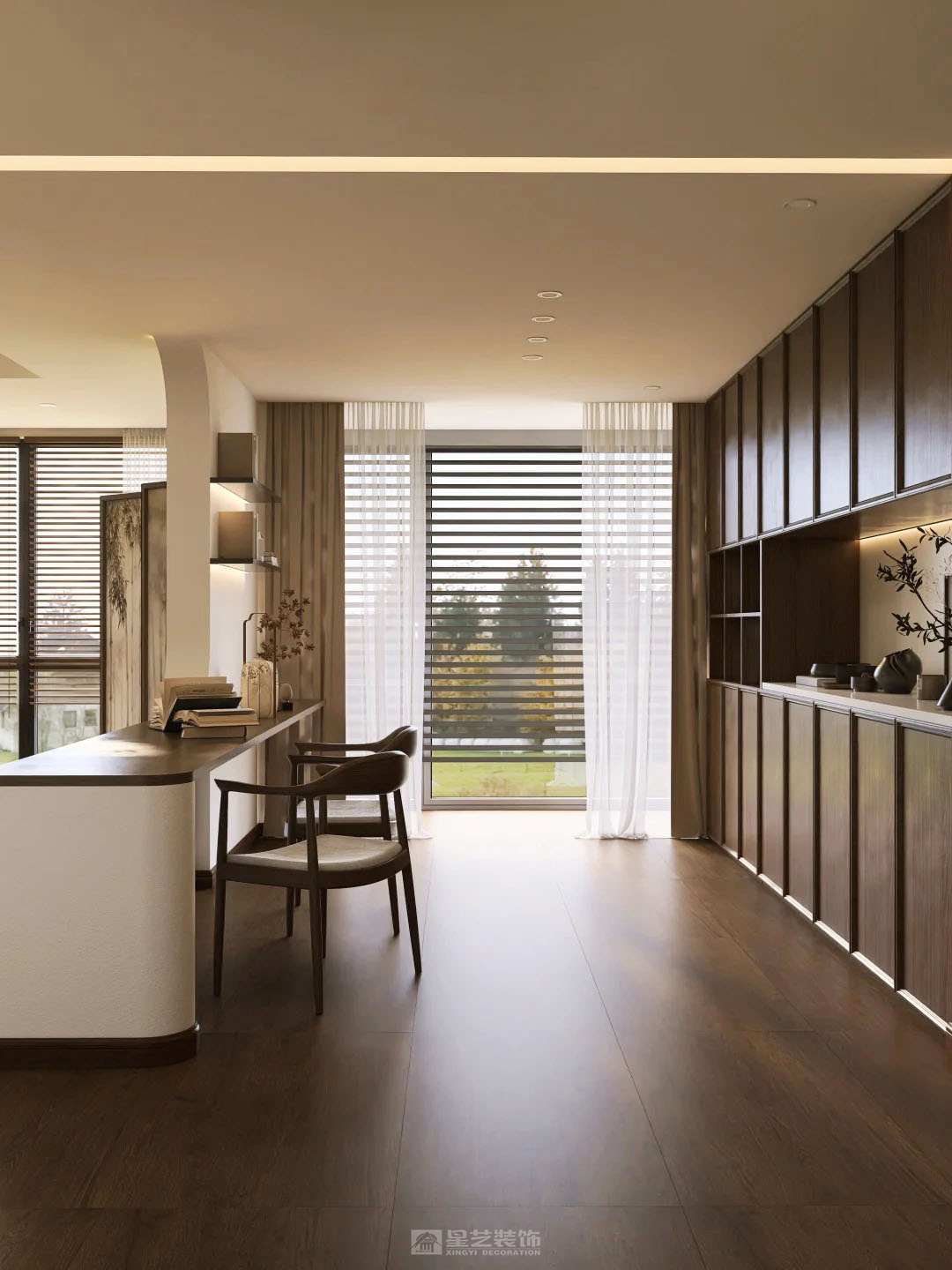 以原木的纹理与温润质感为主角,配合简洁的线条与克制的装饰,营造宁静、温馨的氛围。墙面宜选浅黄、浅棕、淡灰等淡雅原木色或中性色,避免高饱和、强对比色破坏整体感。