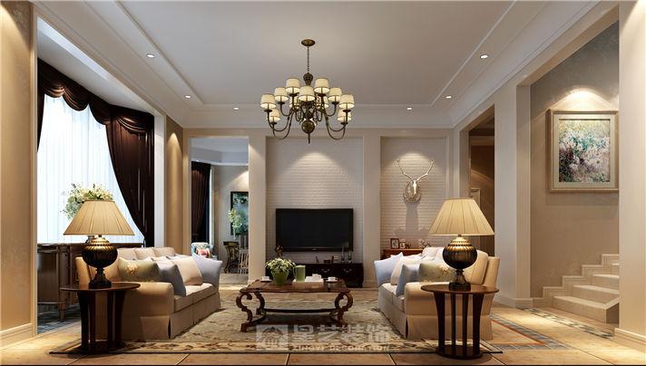 这组空间以美式轻奢为基调:客厅用复古吊灯、纹理墙布营造温馨,餐厅借壁龛灯光衬出精致,主卧以软包床头 + 暗纹墙布显优雅,次卧用粉调软装打造柔美感,卫浴通过双台盆与玻璃隔断兼顾舒适与通透,整体以暖调 + 金属细节,平衡复古质感与生活实用。