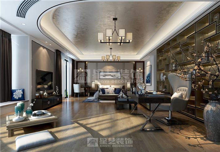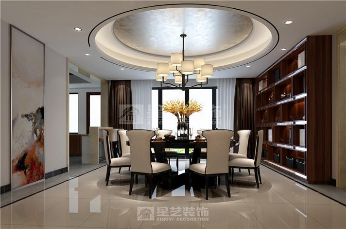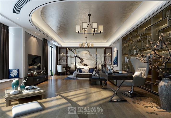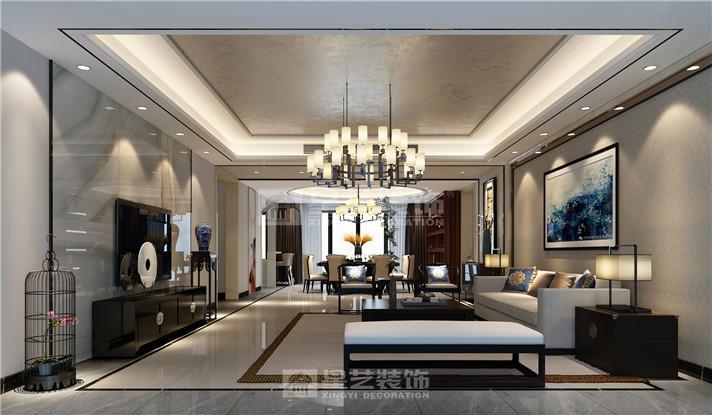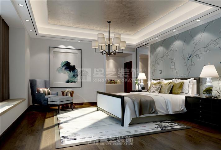 这组空间以新中式为核心风格:客厅借水墨装饰、格栅柜体融传统意境,餐厅用圆形吊顶衬出雅致,卧室以花鸟墙布 + 水墨地毯显国风韵味,卫浴通过玻璃隔断保通透,玄关用禅意灯具过渡空间,整体以木色 + 金属细节,平衡东方美学与现代舒适。