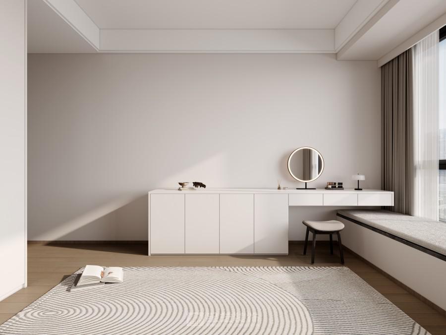 以 “轻暖留白的松弛居境” 为核心:用浅白基底铺陈开阔感,隐形式柜体消弭琐碎,木调展架与暖光壁炉注入温度。客餐厨无界衔接,既保互动性又显通透;悬浮灯与柔纱帘柔化线条,城市窗景引自然入室。设计以 “简形暖质” 平衡极简与温情,让空间在整洁框架里,承载松弛的日常,成为都市里可栖身、可舒展的温柔场域。