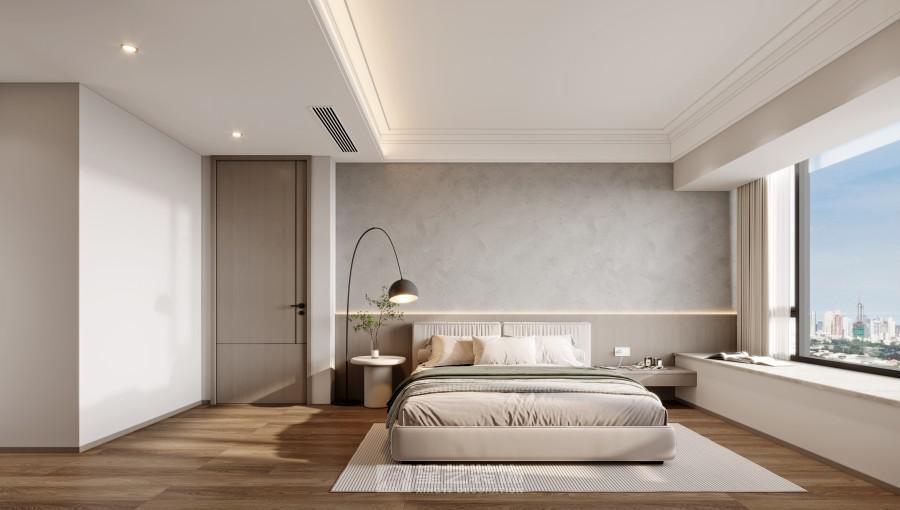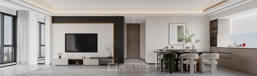 以 “简奢通透的都市栖居” 为核心:用白灰基底铺陈开阔感,隐形式柜体消弭冗余,深色框线与暖光勾出精致层次。客餐厨无界衔接,既保互动性又显通透;跳色餐椅与绿植轻注活力,城市窗景引自然入室。设计以 “克制的精致” 平衡极简与质感,让空间在整洁框架里,承载松弛的日常,成为都市里兼具体面与舒适的栖身场域。