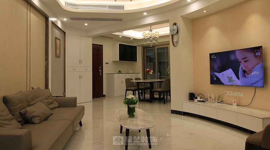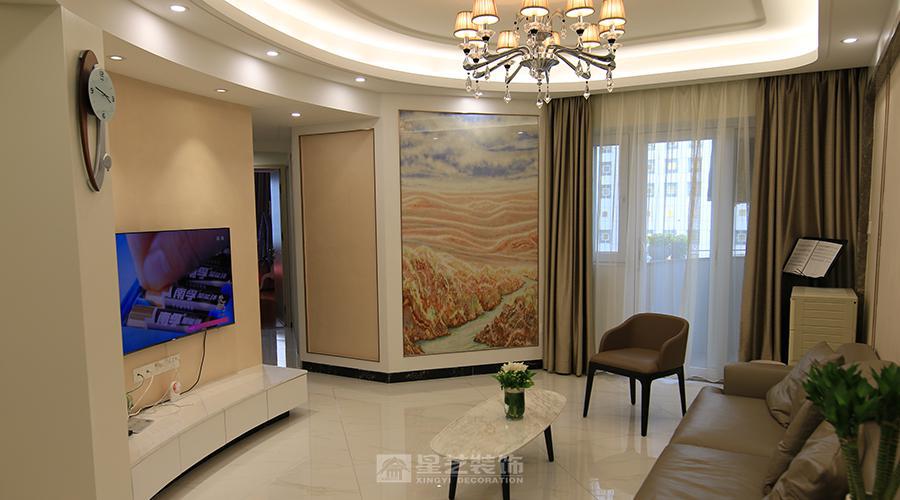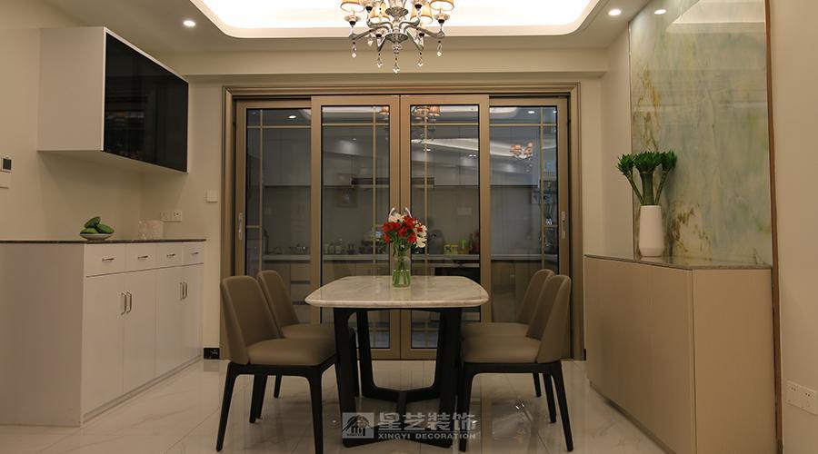 这组家居空间以现代温馨为基调:厨房用灰白柜体 + 简约台面兼顾实用,客餐厅借弧形吊顶、水晶吊灯柔化氛围,浅棕软装搭配大理石纹家具显质感,背景画与绿植点缀提升温馨感,整体以柔和色系 + 简洁线条,平衡日常实用与舒适氛围。