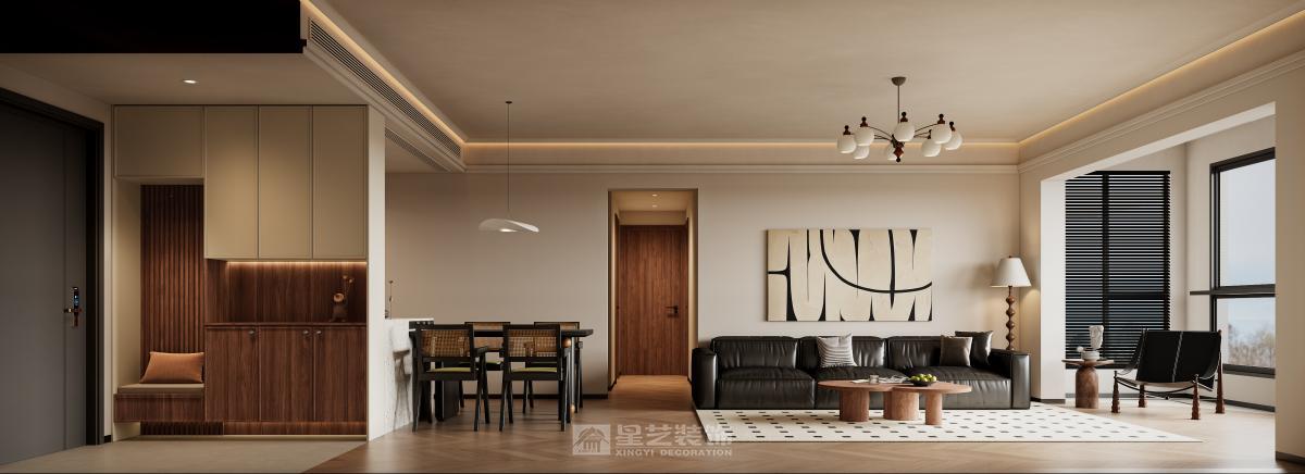 业主为:材料商南方布艺风老板, 自己有装修材料和施工队的,但是依然坚定的选择了星艺,是对行业标杆的肯定和自住项目的高要求,还有对设计格调的追求 业主两夫妻和二岁女儿,喜欢中古风,松弛而不失精致的感觉,喜欢在休闲的午后,光脚踩在木地板和窝在沙发的感觉,对材料和软装的品质,有较高的要求,尤其对灯光和层高有要求,本案采用悬浮式免吊顶带灯型材,实现了悬浮顶的灯光效果,搭配俯瞰江景的提升窗吧台,业主喜欢西式的设计,但是也遵循传统风水,做了隔断的设计,整体风格感突出,