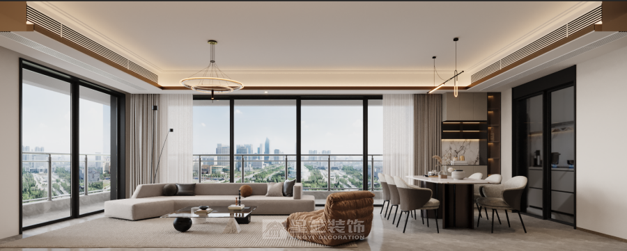 业主是一对丁克夫妻,所有的设计都是围绕男女业主的需求做,空间尽可能的可扩,及保留欣赏绝美夕阳的L型玻璃窗。