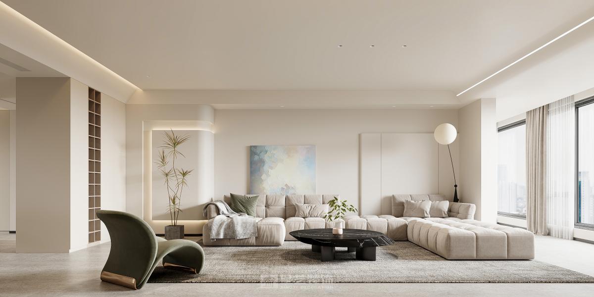 将“光”作为第一设计要素。通过优化户型布局,减少实墙隔断,采用大面积玻璃、室内窗及镜面元素,让自然光在空间中自由穿透与反射。色彩上以浅灰、米白、原木色为主,形成纯净的光线画布。设计注重不同时间光影在墙面与地面的变化轨迹,搭配智能无主灯系统,营造从日出到日落的完整光环境叙事,让家始终沐浴在“天朗”之气中。
