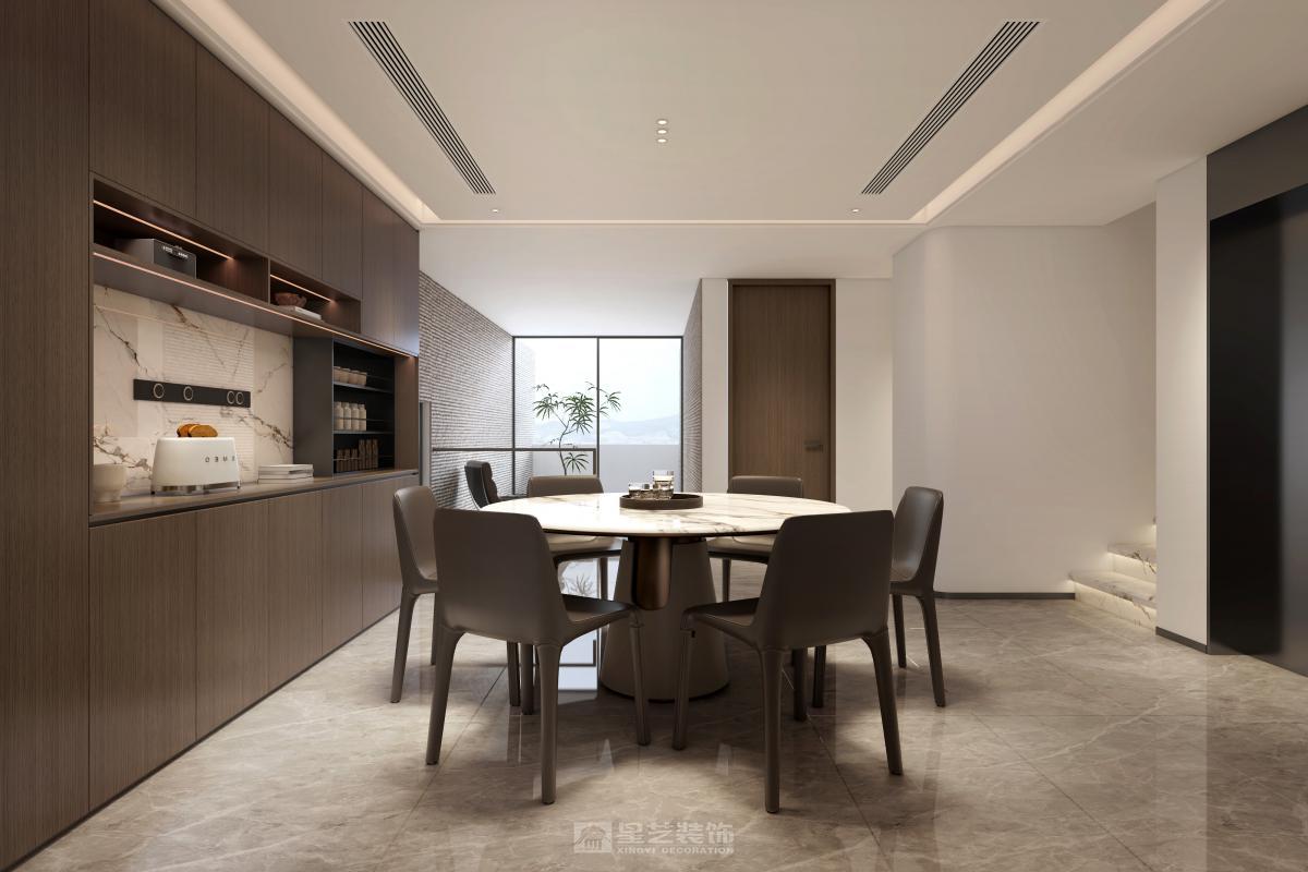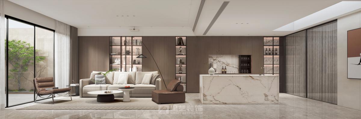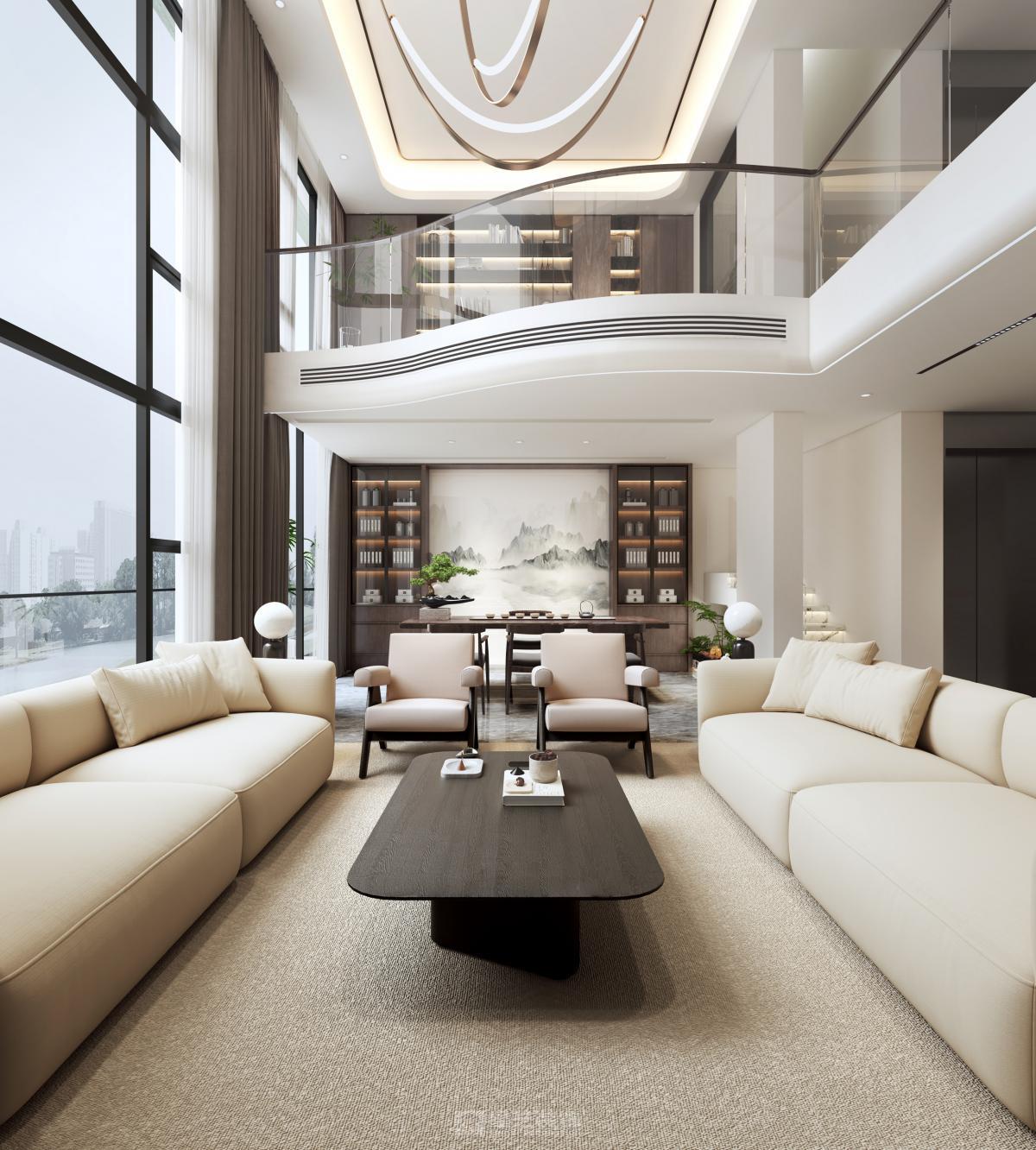 本500㎡现代中式空间,融合东方雅致与现代简约,以木石为基底,留白造境,借屏风、格栅划分动线,将山水意境融入软装细节。摒弃繁复雕花,用简洁线条勾勒东方气韵,兼具传统美学意境与现代居住舒适度,打造兼具文化底蕴与实用功能的雅致宅邸。