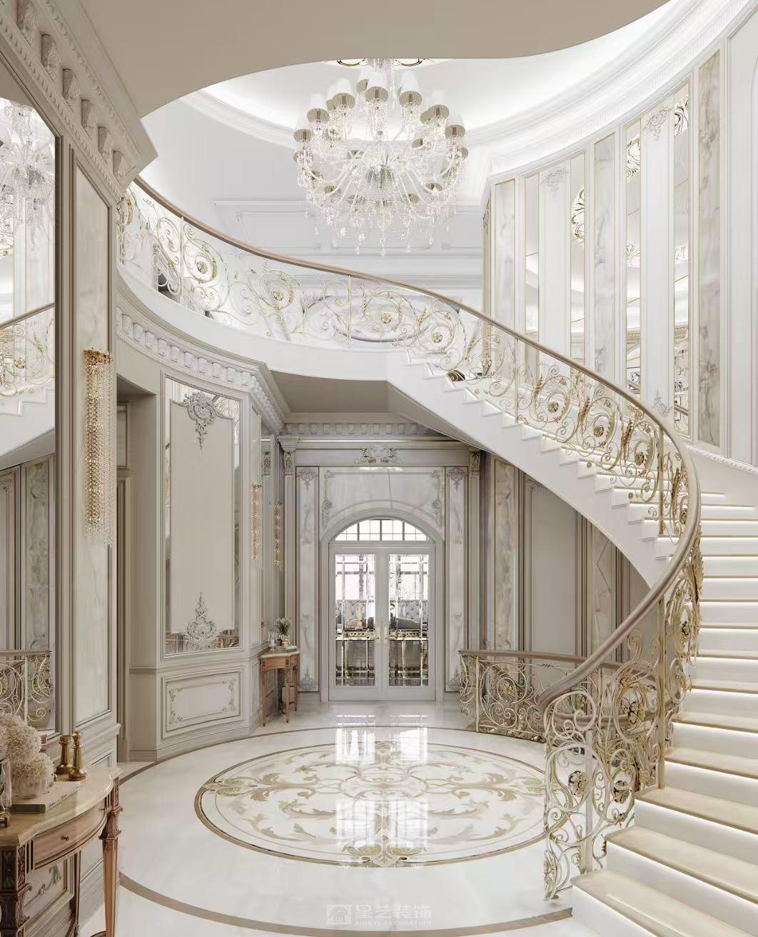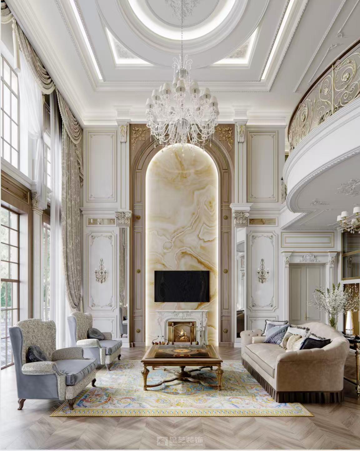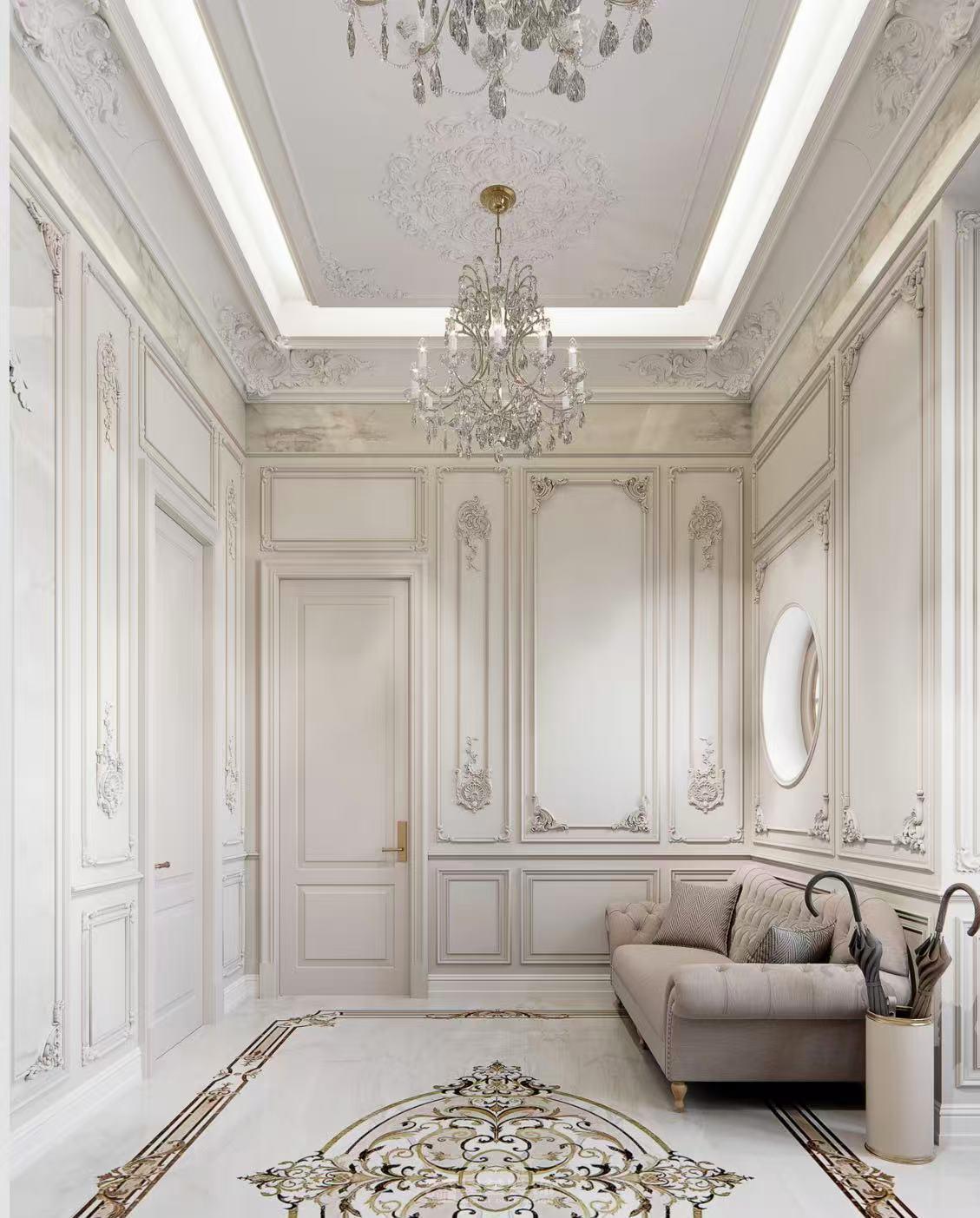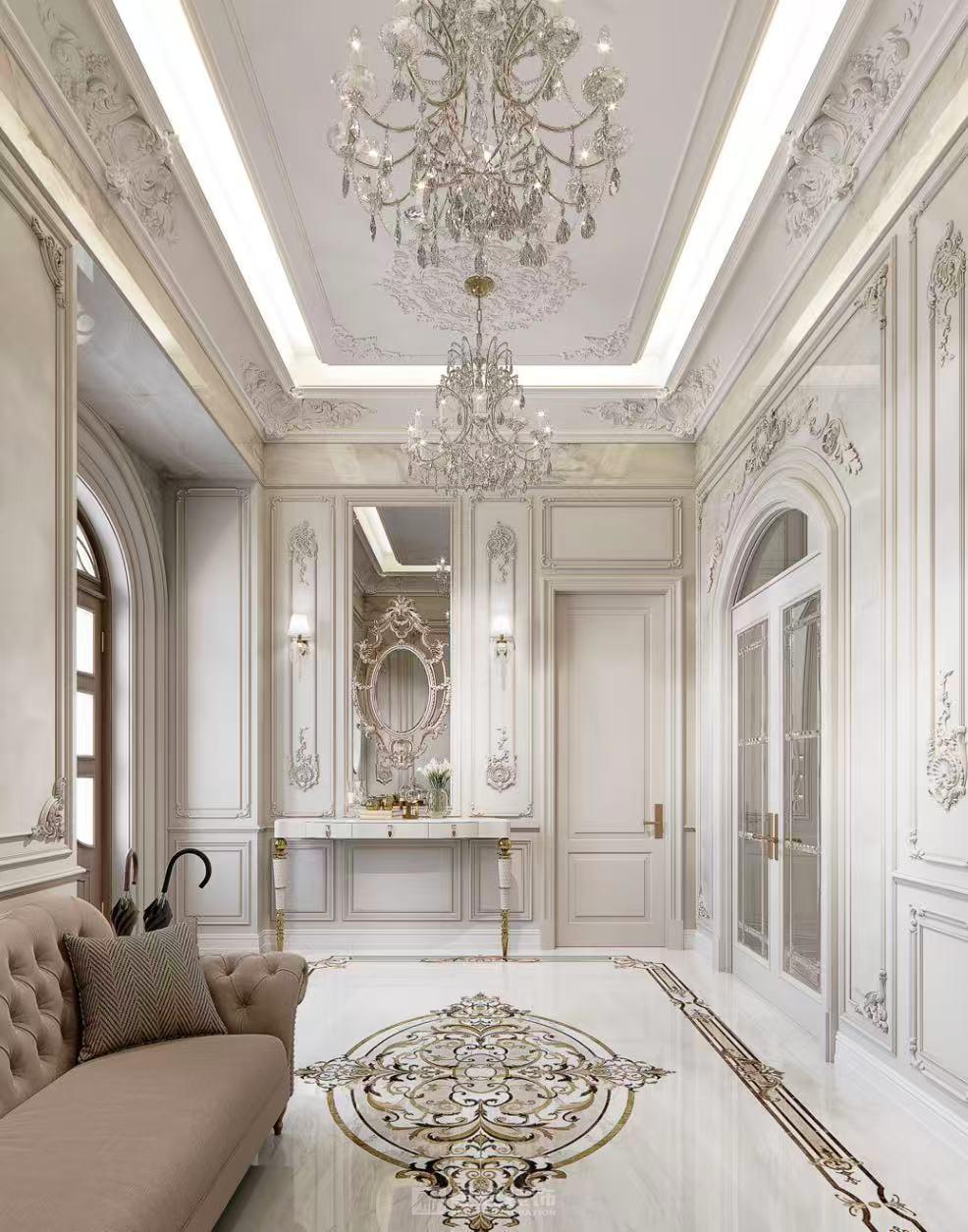 1000㎡法式大宅,以雕花护墙板勾勒优雅轮廓,大理石拼花铺陈精致肌理,天然玉石点缀空间点睛,糅合法式浪漫线条与轻奢质感。配色温润典雅,光影交织间尽显法式宫廷的精致与浪漫,打造兼具仪式感与舒适感的传世宅邸。