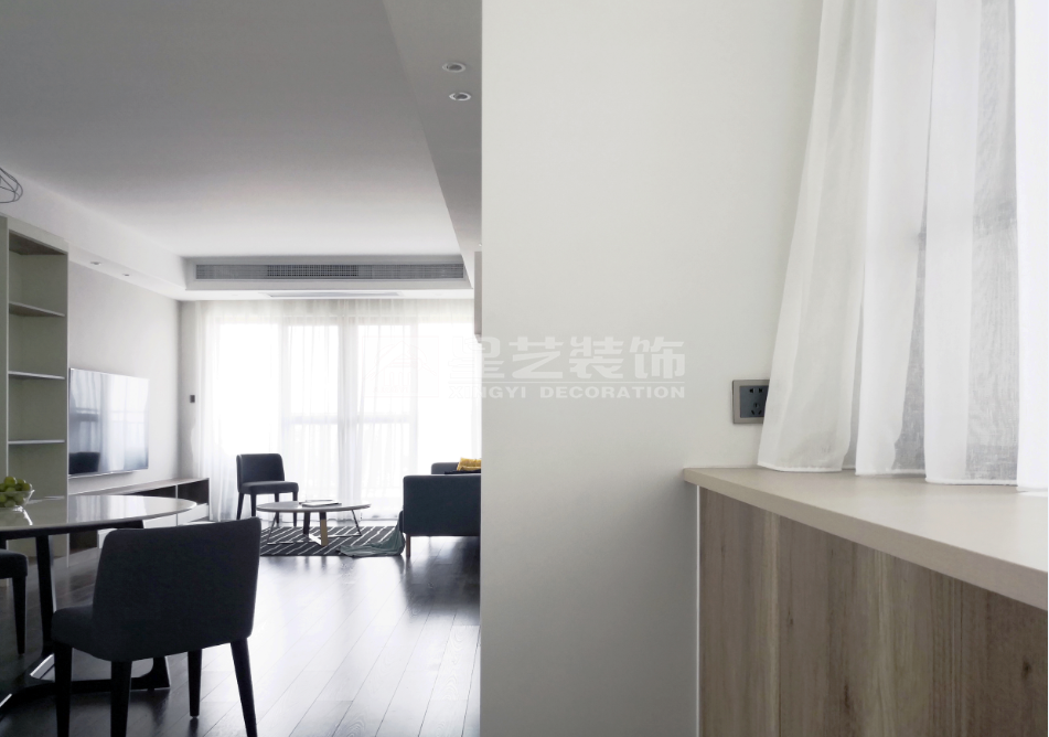 本案空间简洁,色调以黑白灰为主,空间整体给人一份宁静,在大城市的嘈杂,回到家给居住在这个空间会平复心灵,拿一份报纸一本书,静静感觉时间的过往。色调上以浅色为主:白色、灰色,水泥灰等。而材质方面以自然的元素,如木 柔软质朴的纱麻布制品等。 现代风格以简约著称,具有很浓的后现代主义特色,注重流畅的线条设计,代表了一种时尚,回归自然,崇尚原木韵味,外加现代、实用、精美的艺术设计风格,正反映出现代都市人进入新时代的某种取向与旋律。