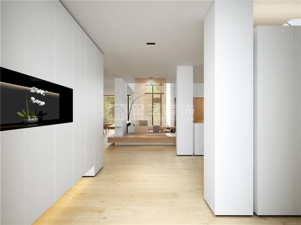 本案以“璞”为主题,从中国古代文人理想的园林环境中获得灵感,在建筑的外部增加格栅做成的回廊,靠窗设置平台,模糊室内外界限,给居住者创造与自然亲密接触的生活场景。去除多余装饰,探索用现代化的元素实现悦情自然,注重内在精神世界的居住环境。