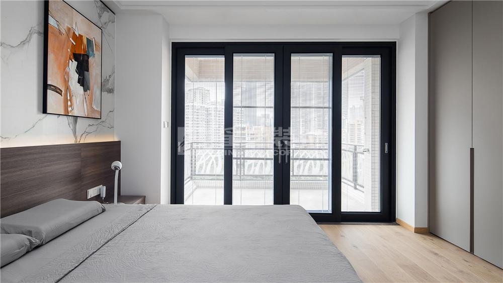 摒弃繁复冗杂的装饰手法,运用特级雪花白的石纹大板一砖到顶,在两种材质碰触之际,用黑哑钢作为间隔收口,贯彻整个公共空间,不容得任何拖泥带水。石纹砖在带来硬朗质感的同时会略感清冷,因此地面有意选择暖色调木地板作为调剂,提升空间“温度”。在以暖灰调家具作为空间主基调的同时,使用橙色单品作为点缀,既显统一又不失活泼。