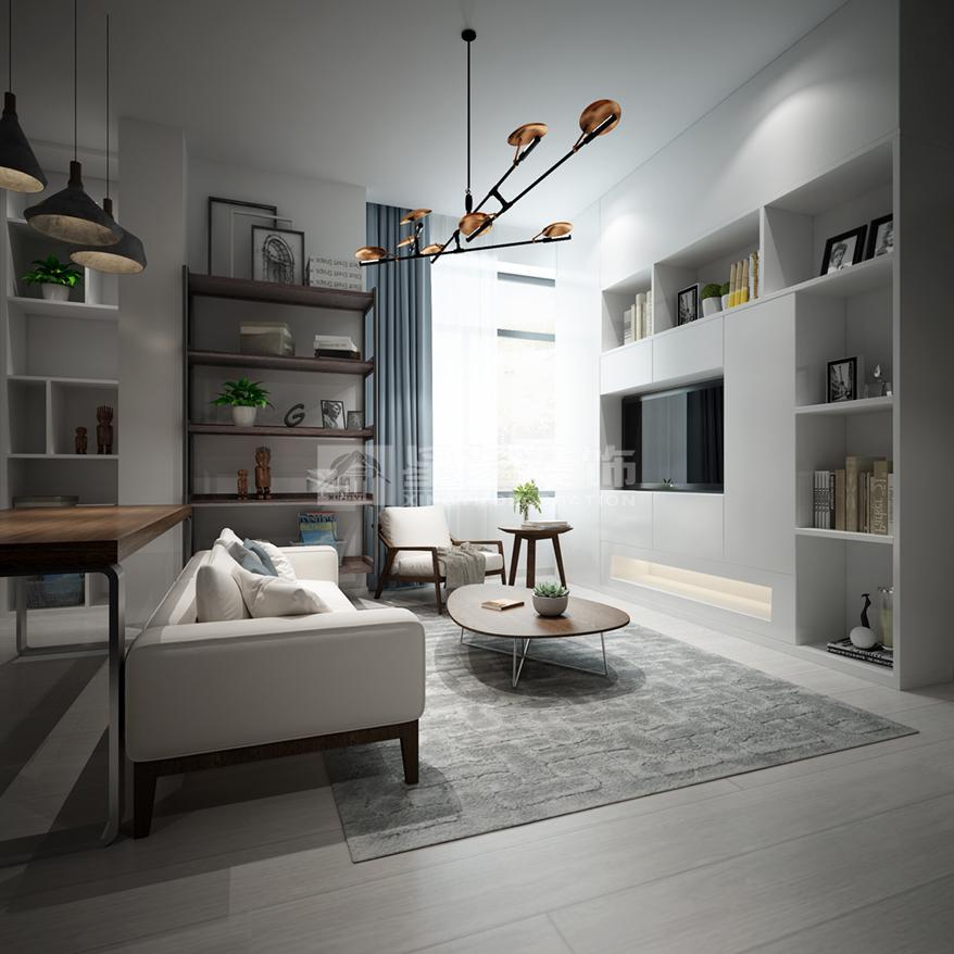 狭小的空间里充分利用留白哲学给人的视觉-扩景。 大面积的电视背景墙起到强大的储藏以及展示作用。