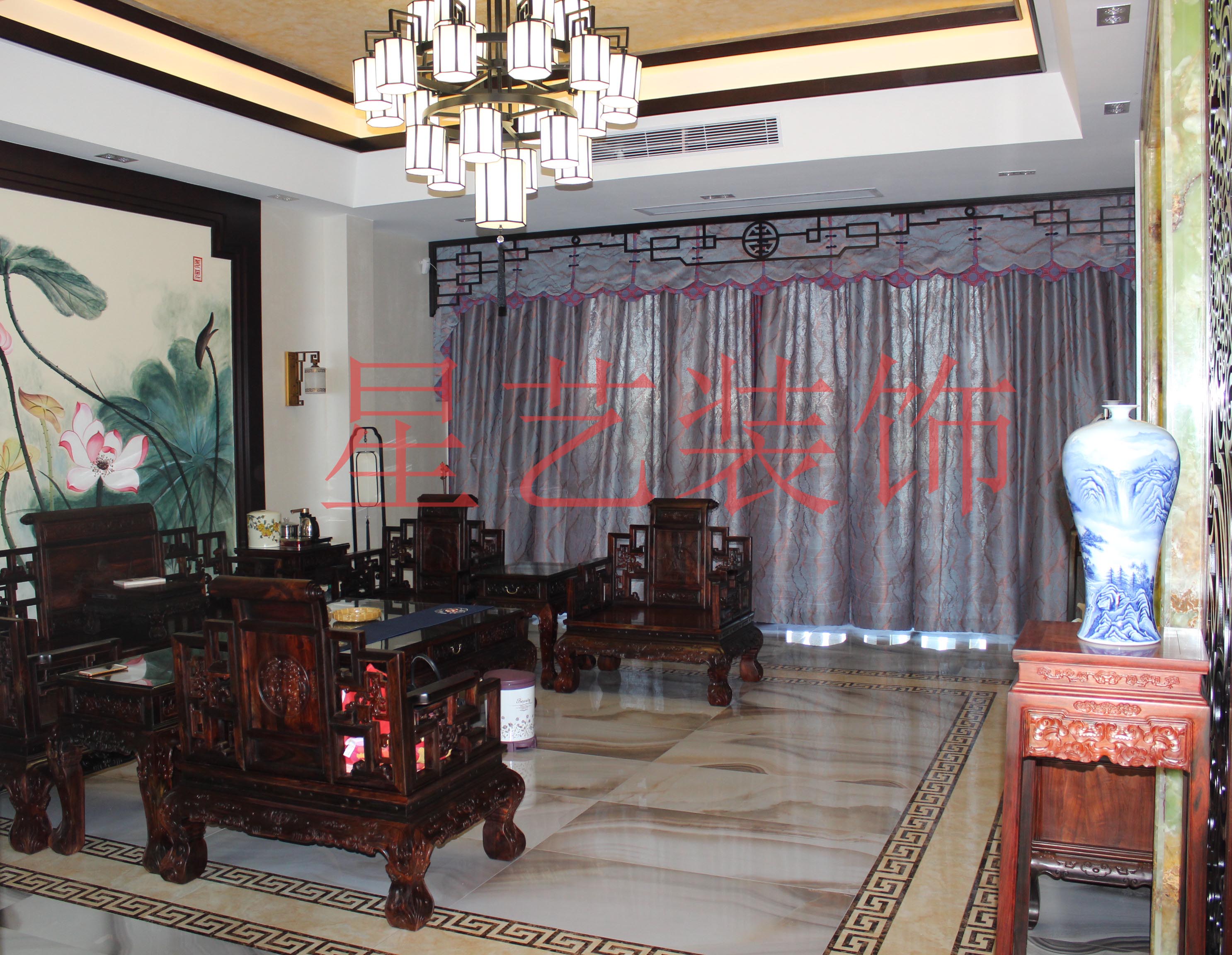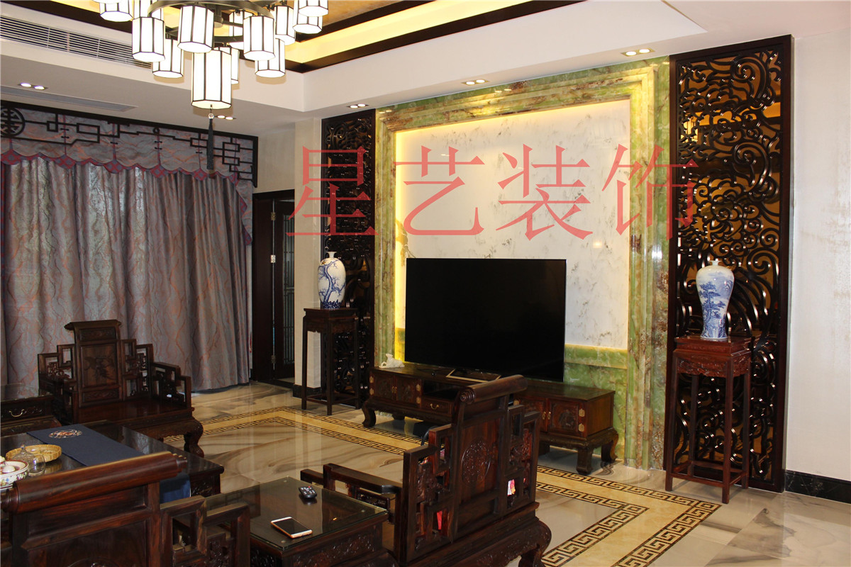 风格:中式风格; 用材:天然大理石、大理石瓷砖、玉石、沙比利实木线条、沙比利面板、艺术涂料··· 理念:四季不能植物来展现中式元素