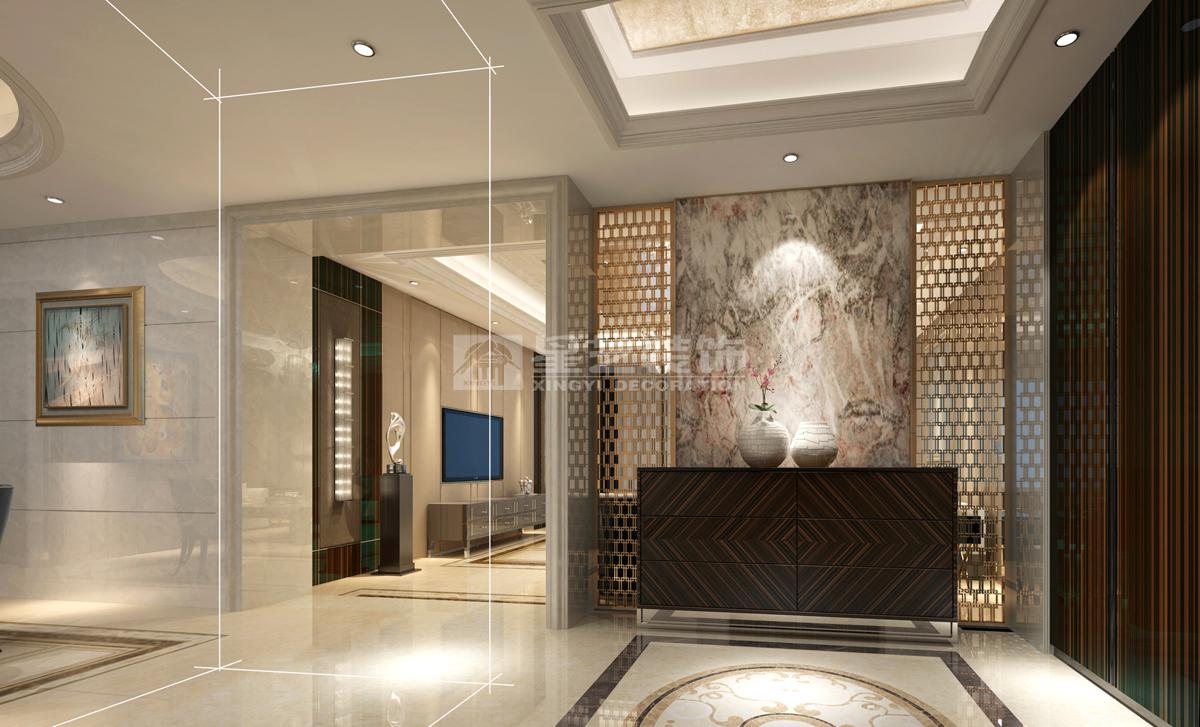 本案在格局上最大化地优化了储物空间,在设计风格上,放弃不必要的线条及造型,大面积地使用皮质硬包、大理石及玫瑰金不锈钢装饰条,三种不同时代的材质碰撞形成了很好的视觉冲击力,给人一种很温馨惬意的感觉。