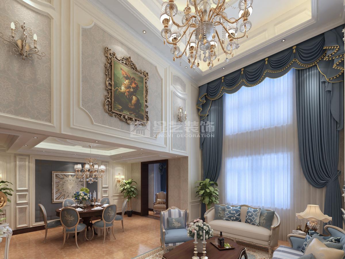 本案客厅以暖色为主色调,充满欧式元素的吊顶让空间显得更加华贵。整体设计上给人带来清爽明快之意,宽敞的空间布局让人更加舒畅,设计上以功能性为优先考虑,追求舒服,兼顾优雅,注重起居品质。暖色调让人百看不腻。