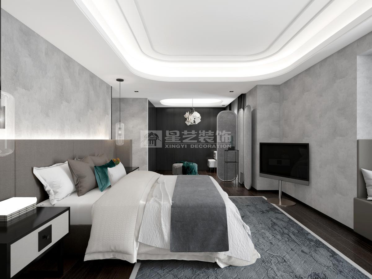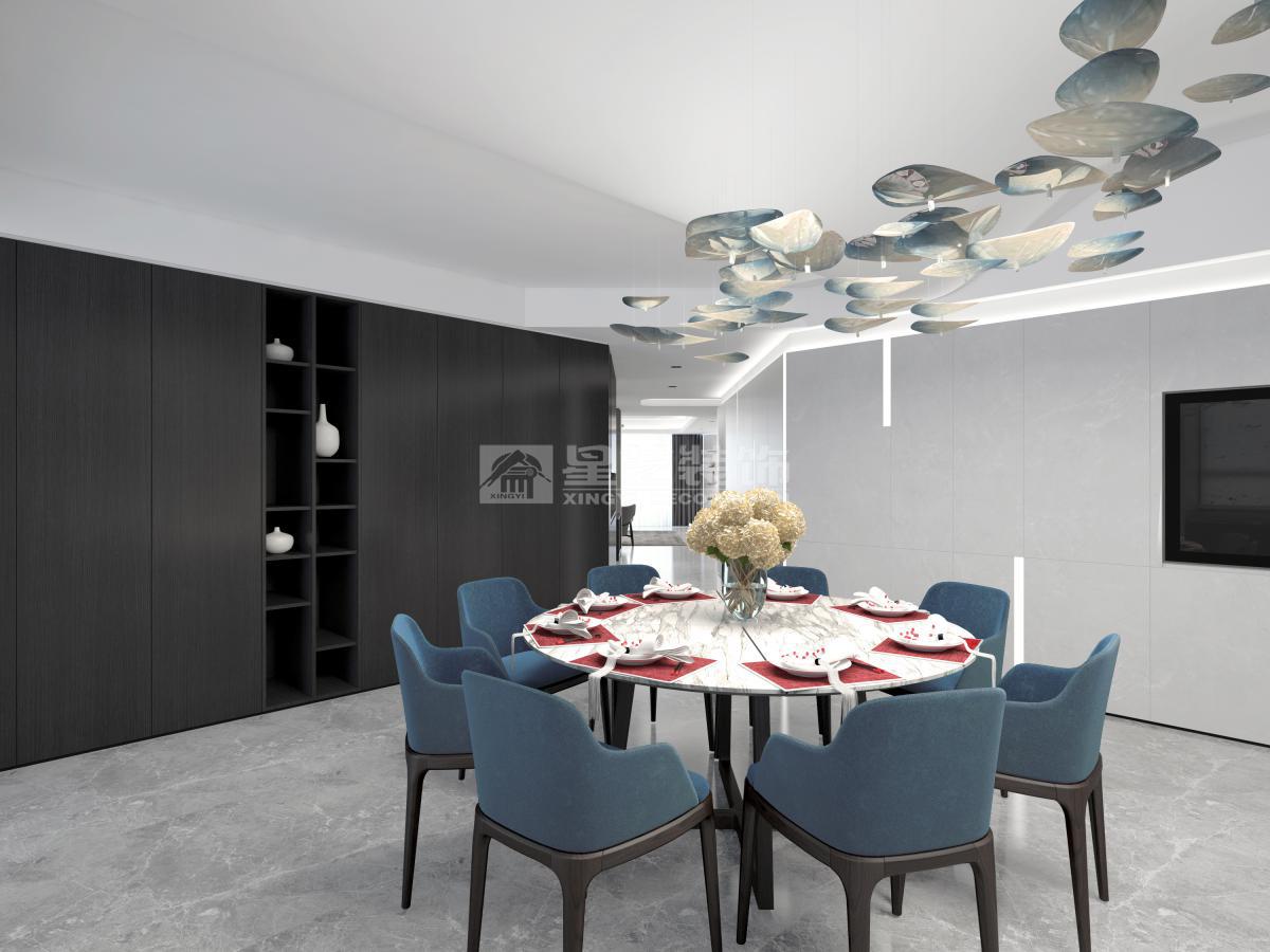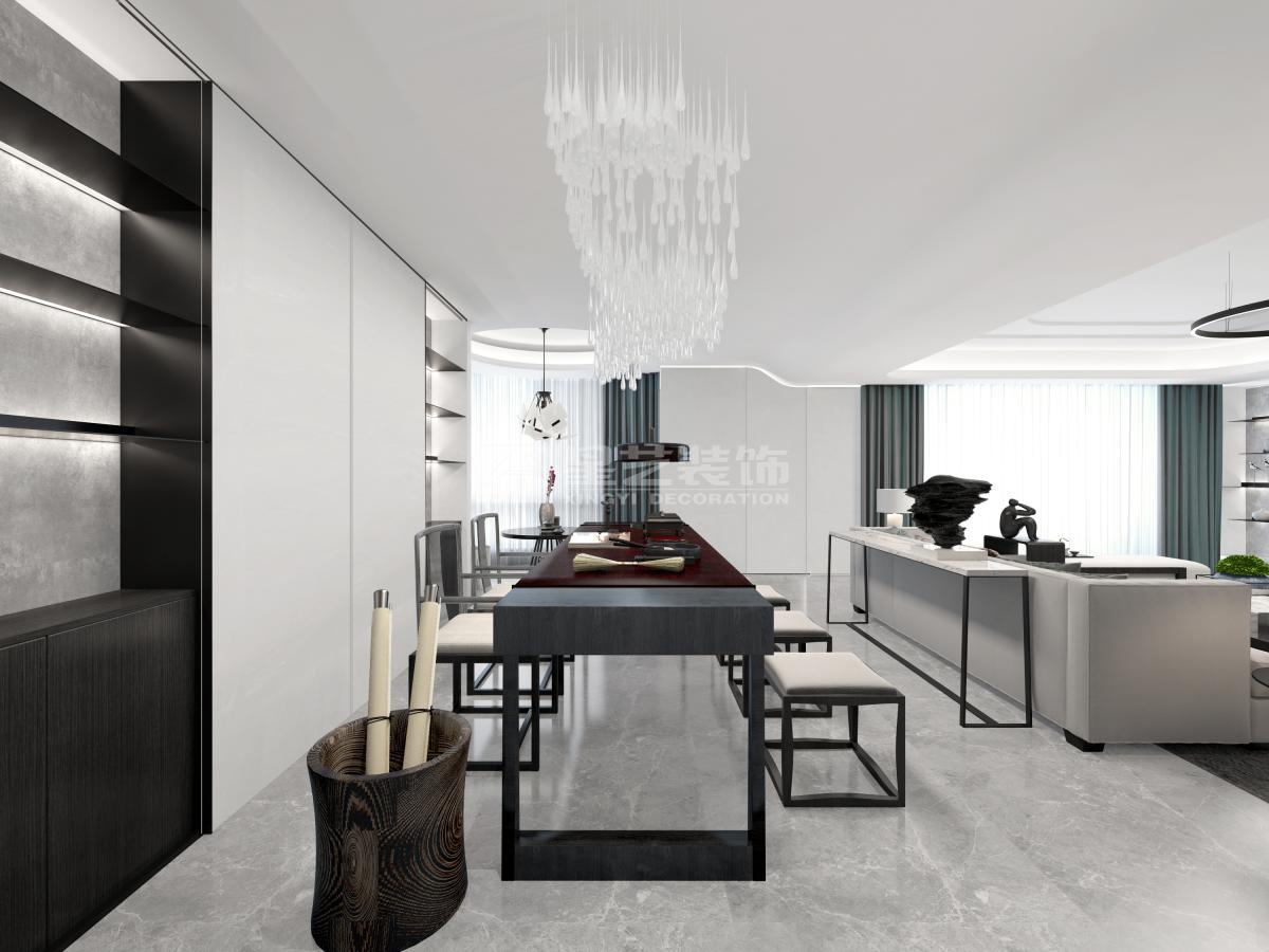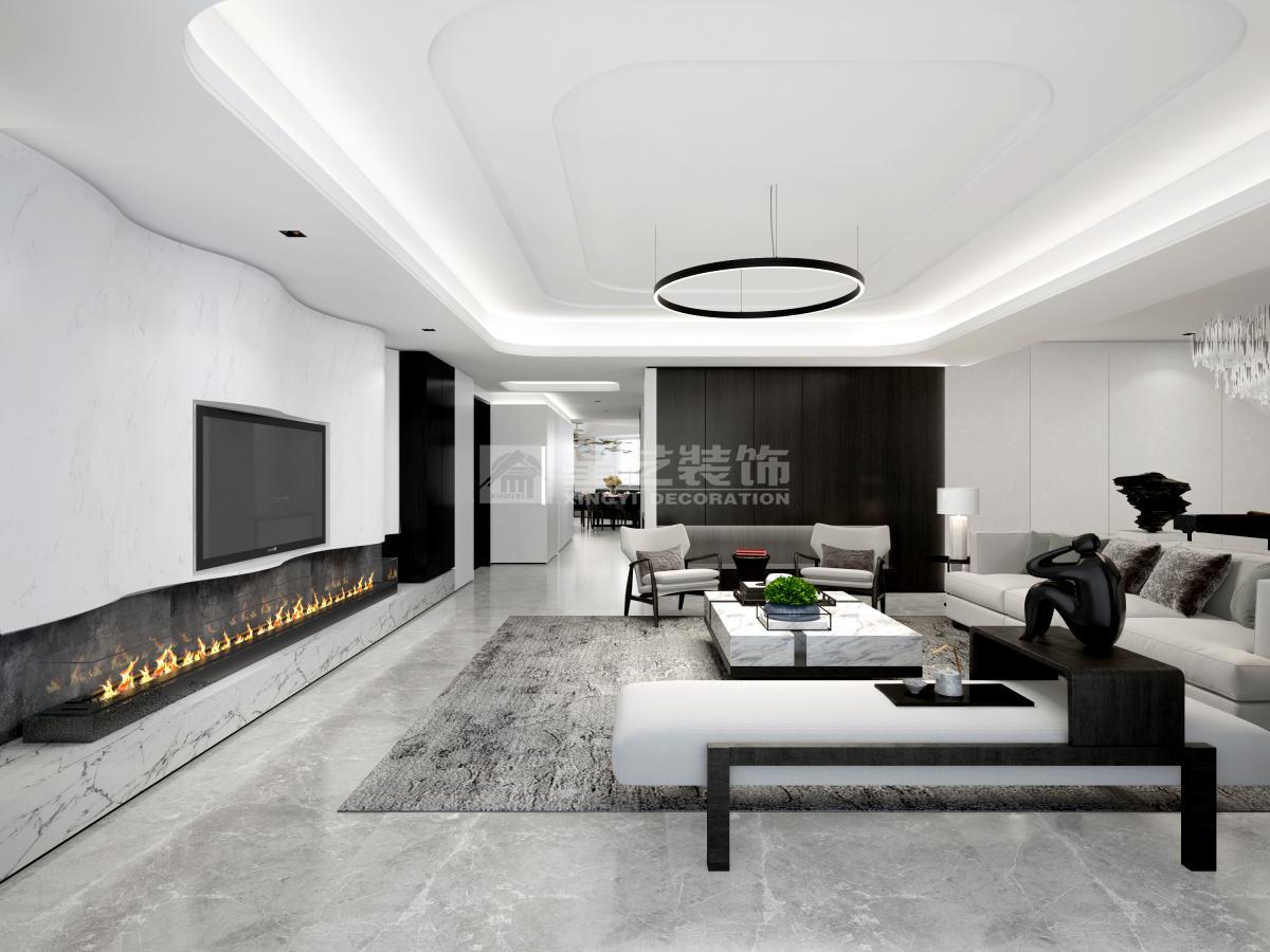 本案用波浪状的天花造型配合灯饰来化解空间中较大的梁位,整体配色低调不失奢华