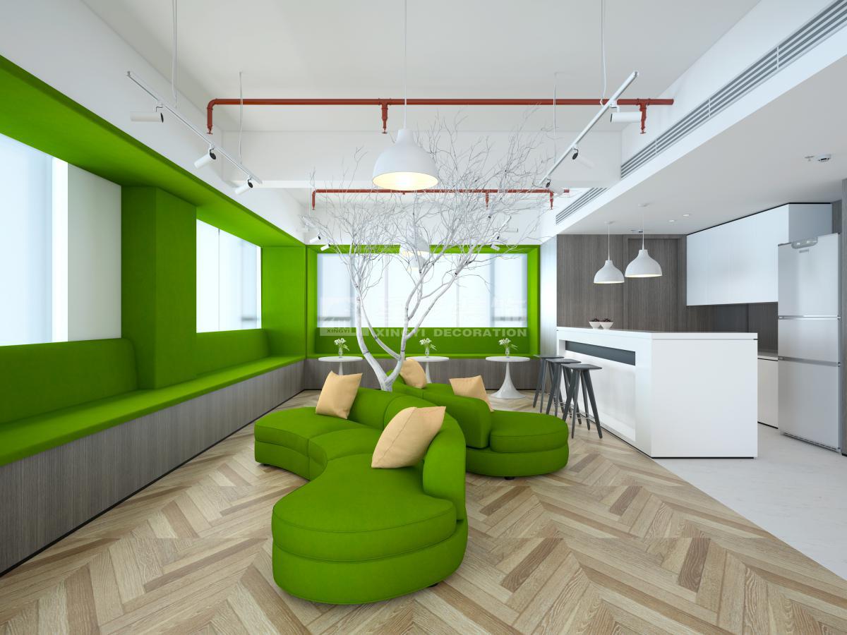 本案位于生物岛的一家制药公司,医药的关系,设计主调运用了洁净的白色和代表生命力的绿色。前台背景采用复合材料透光护墙板,把品牌向上的生命力展现出来,老总办公室沿袭的是时尚加上稳重的色调,员工休闲区采用了活泼的绿色调性,整个空间的是稳重又不失活泼。