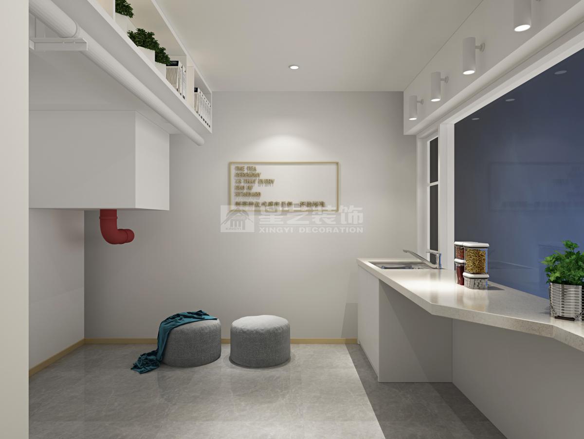 “星之乳”奶茶店整体风格以白色现代简约风格为主,局部用金色点缀,让空间看上去非常简洁,大气。