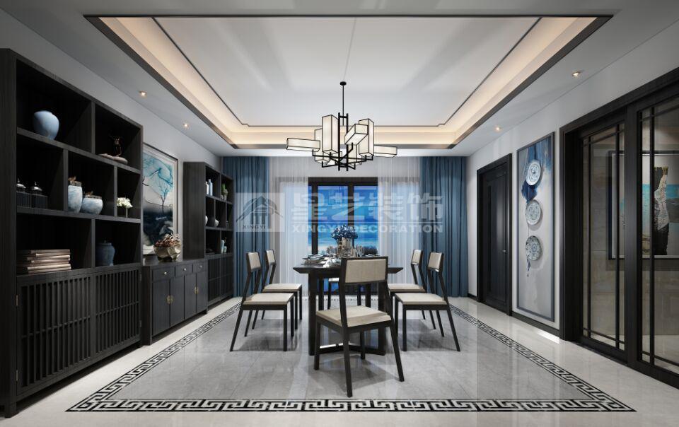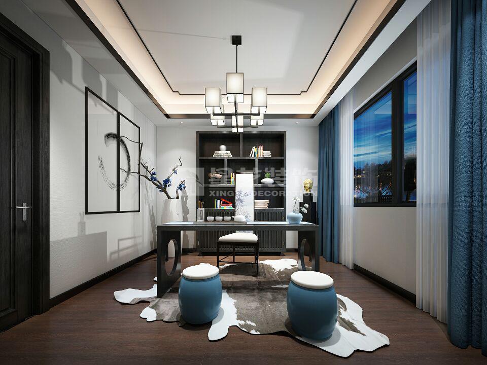 业主是一位企业家,对于中式元素比较喜欢,所以在设计的时候色调采用中国山水画的颜色来搭配,效果客户还算满意