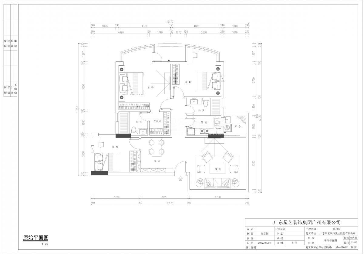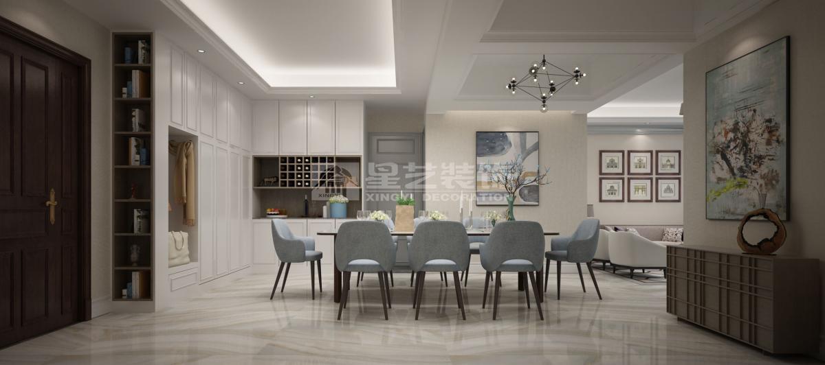 本案是旧房翻新,首先房子有一个比较明显的缺点,餐厅过小而且不透光,比较暗。这个方案比较大胆的把原主人房改成客厅,这样可以打开原主卧的墙,光线就可以透到餐厅去。把衣帽间的空间也归到餐厅,这样餐厅变的很大很明亮。