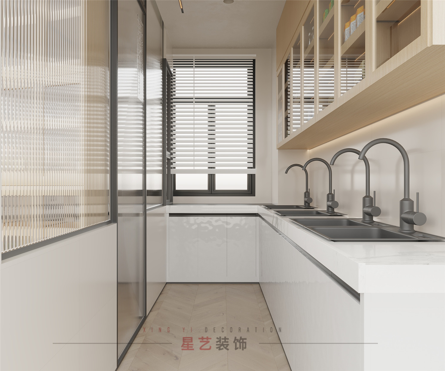 清洗室和消毒室配备了足够的储存空间与洗手台,划分精准。百叶窗设计使空间更为通透,满足通风条件。